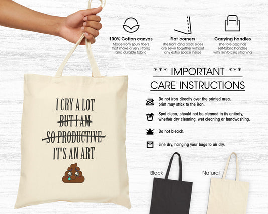 I cry a lot, but I am so productive, it's an art cotton canvas tote bag