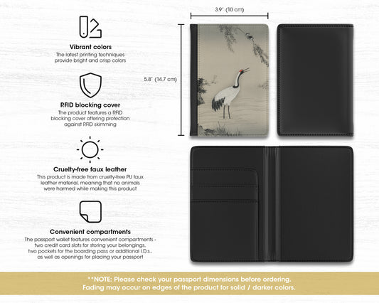 Kano Motonobu - A Traditional Portrait of a Beautiful Japanese Crane passport cover