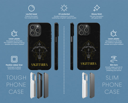 Sagittarius Zodiac sign golden line art black marble iPhone case