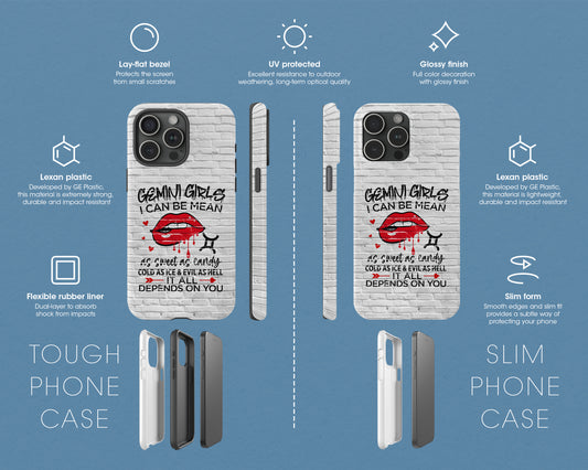 Gemini Zodiac sign Girls I can be mean black graffiti on white brick wall iPhone case