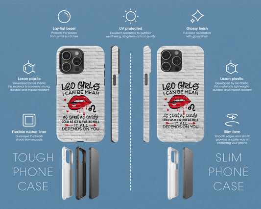 Leo Zodiac sign Girls I can be mean black graffiti on white brick wall iPhone case
