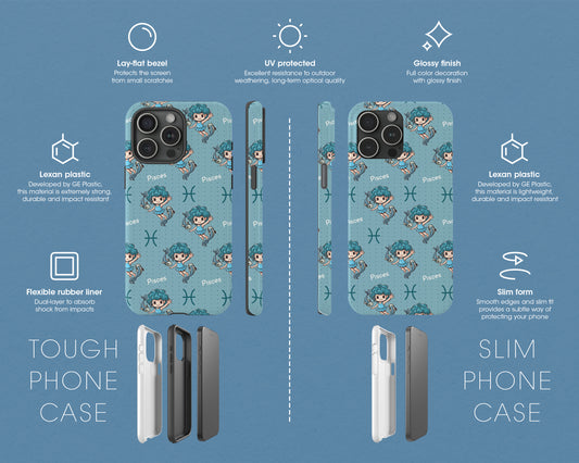 Pisces Zodiac sign cute cartoon girl iPhone case