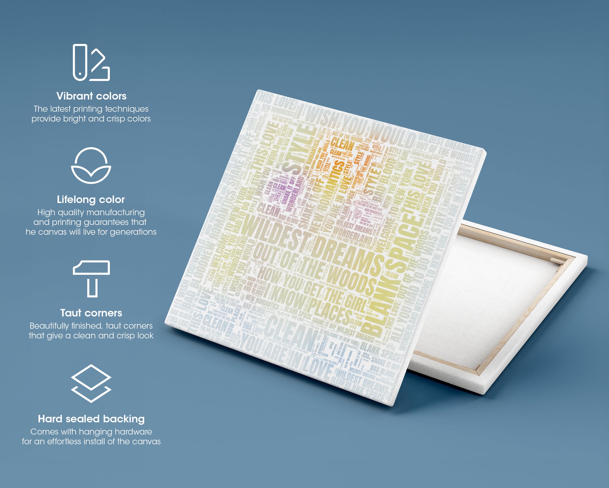 Transform your wall into a stunning work of art. This gorgeous word art design was inspired and created from your favorite album and its song titles. The minimal feel and vivid color make it stand out yet able to fit in with any style of decor. Your space should reflect who you are and what you care about. Adding a pop of color to your walls or desks is an easy way to inject some personality into any room and put a smile on your face. They also make a lovely gift for friends and family.