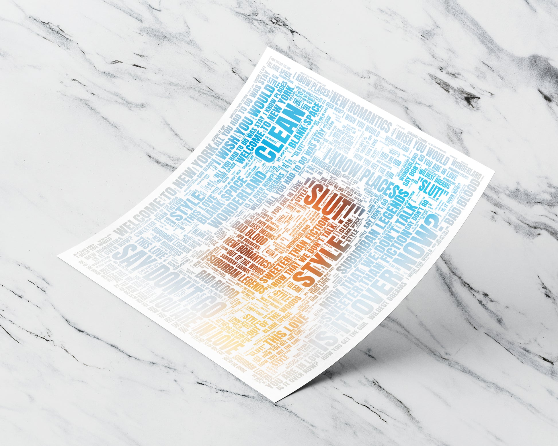 Transform your wall into a stunning work of art. This gorgeous word art design was inspired and created from your favorite album and its song titles. The minimal feel and vivid color make it stand out yet able to fit in with any style of decor. Your space should reflect who you are and what you care about. Adding a pop of color to your walls is an easy way to inject some personality into any room and put a smile on your face. They also make a lovely gift for friends and family.