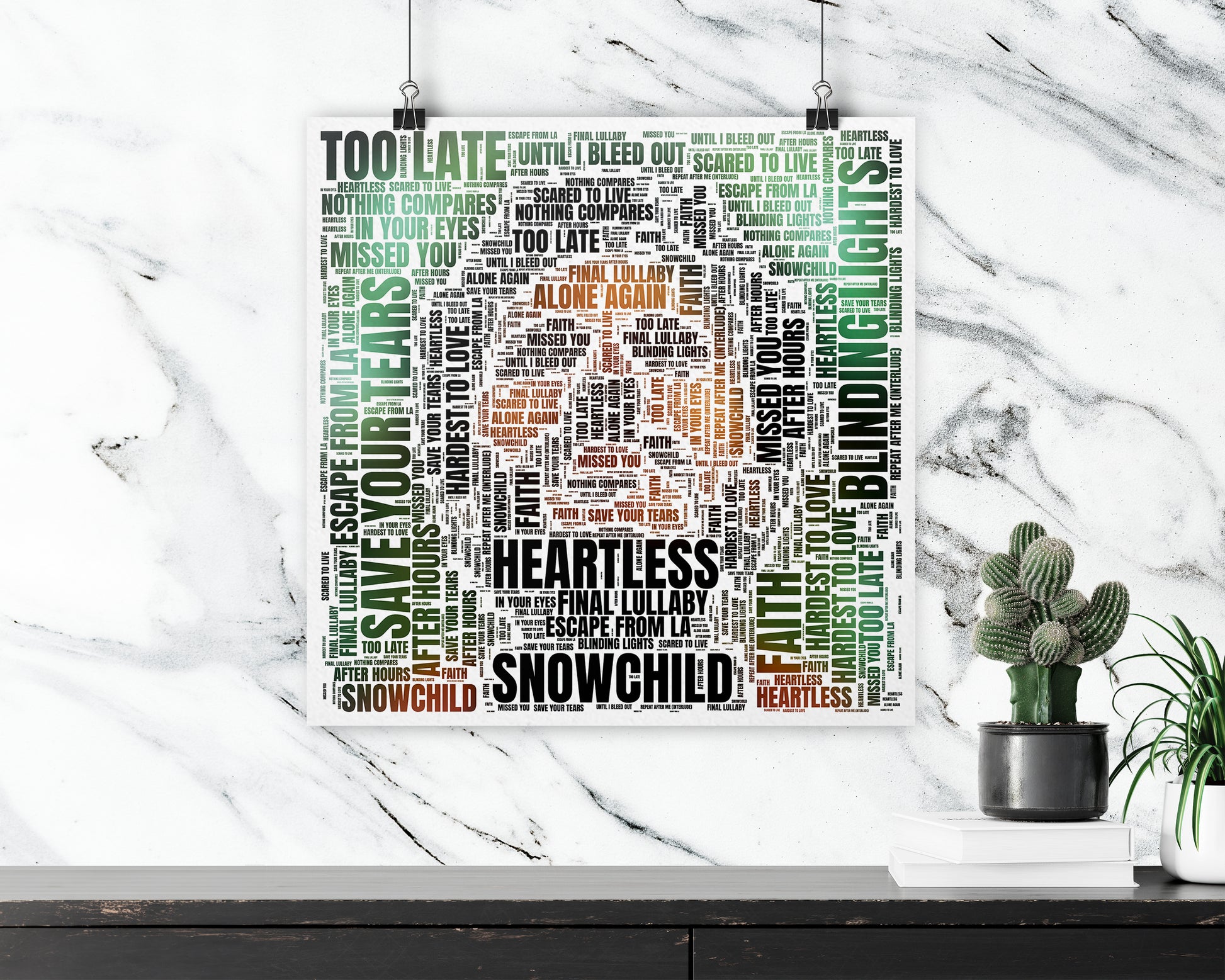 Transform your wall into a stunning work of art. This gorgeous word art design was inspired and created from your favorite album and its song titles. The minimal feel and vivid color make it stand out yet able to fit in with any style of decor. Your space should reflect who you are and what you care about. Adding a pop of color to your walls is an easy way to inject some personality into any room and put a smile on your face. They also make a lovely gift for friends and family.