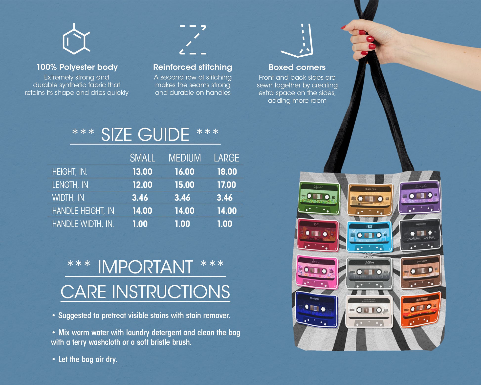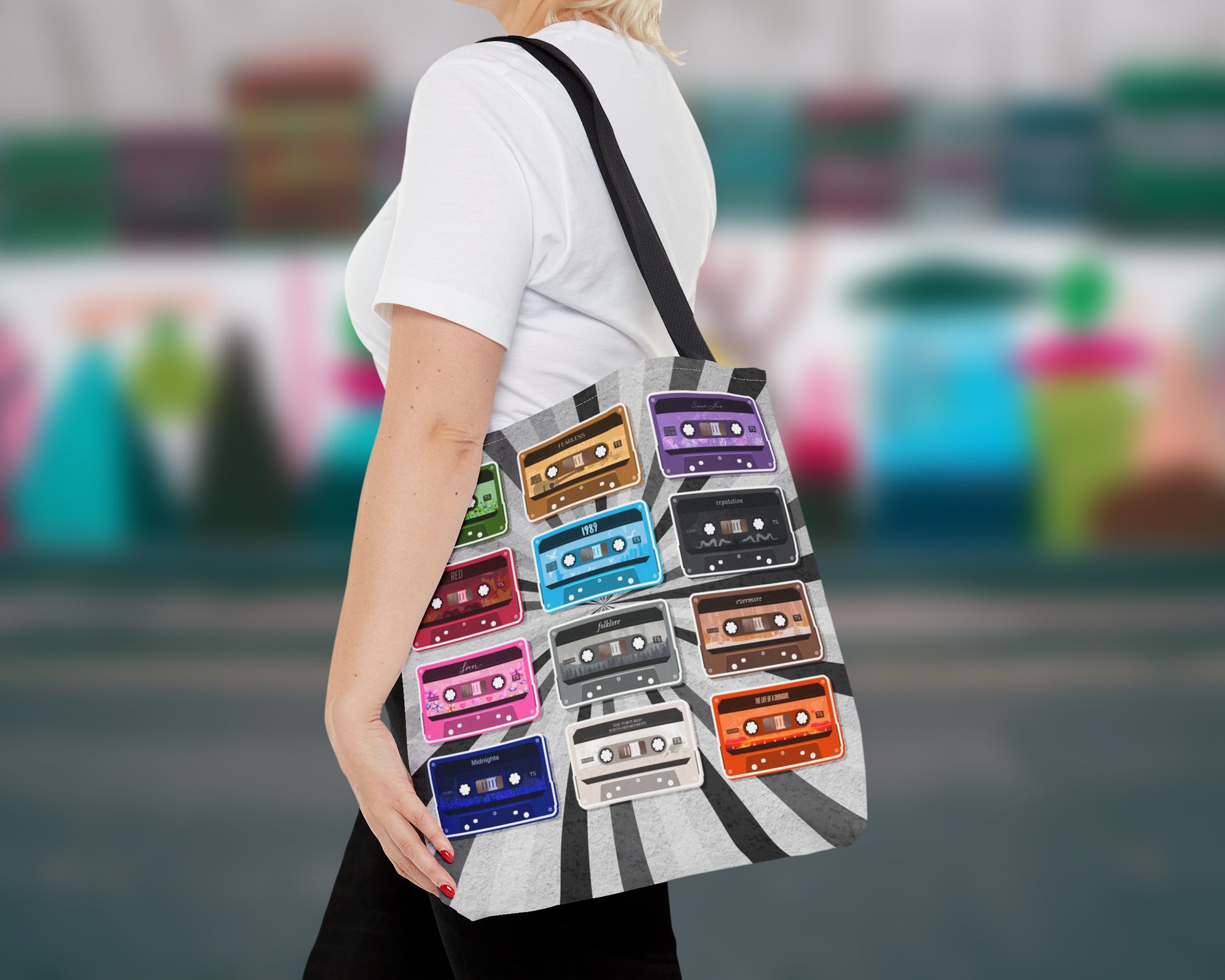 Distinctive tote bag, music merch, gift, accessories. All-over print fabric bag.