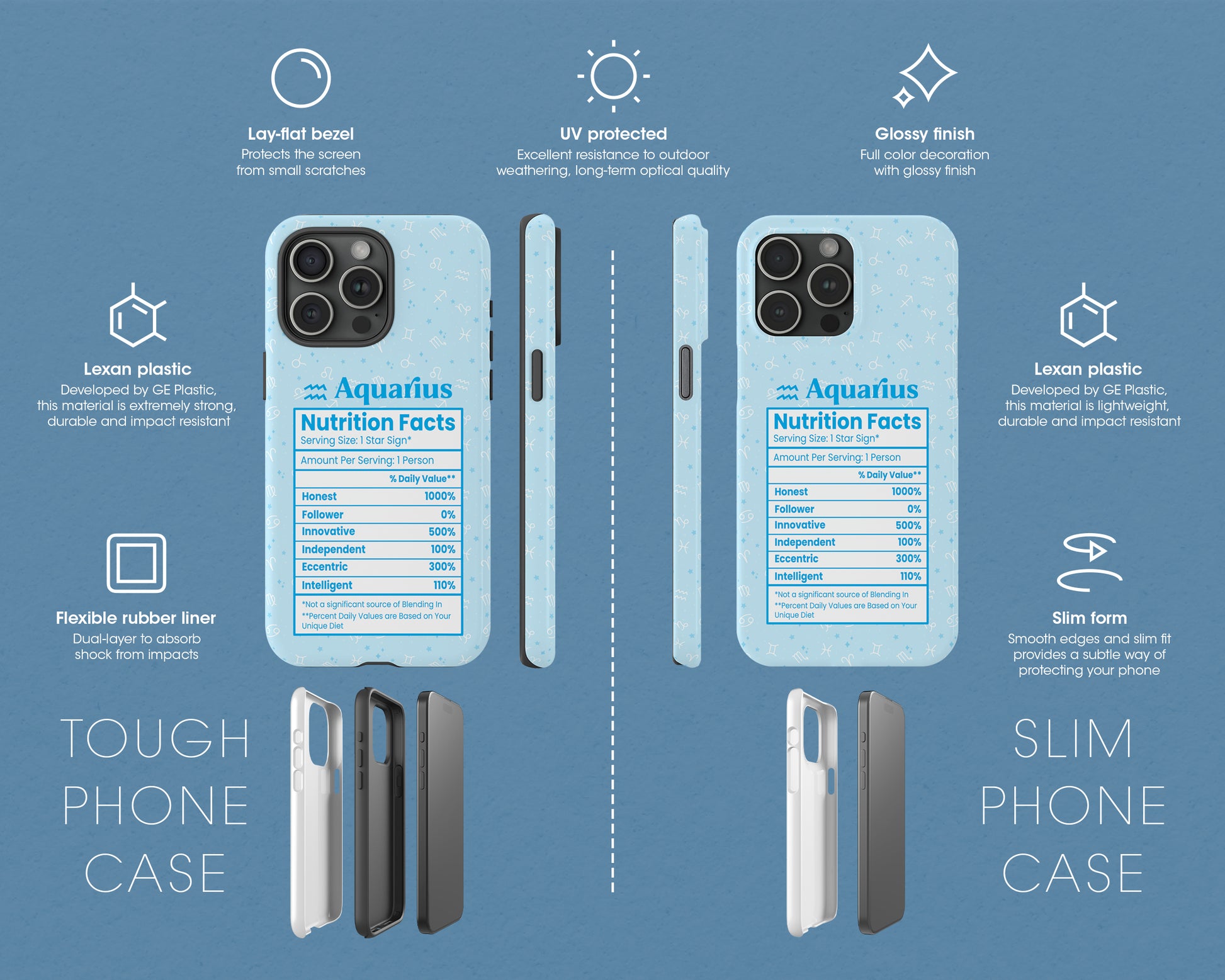 Aquarius Zodiac sign nutrition facts label iPhone case