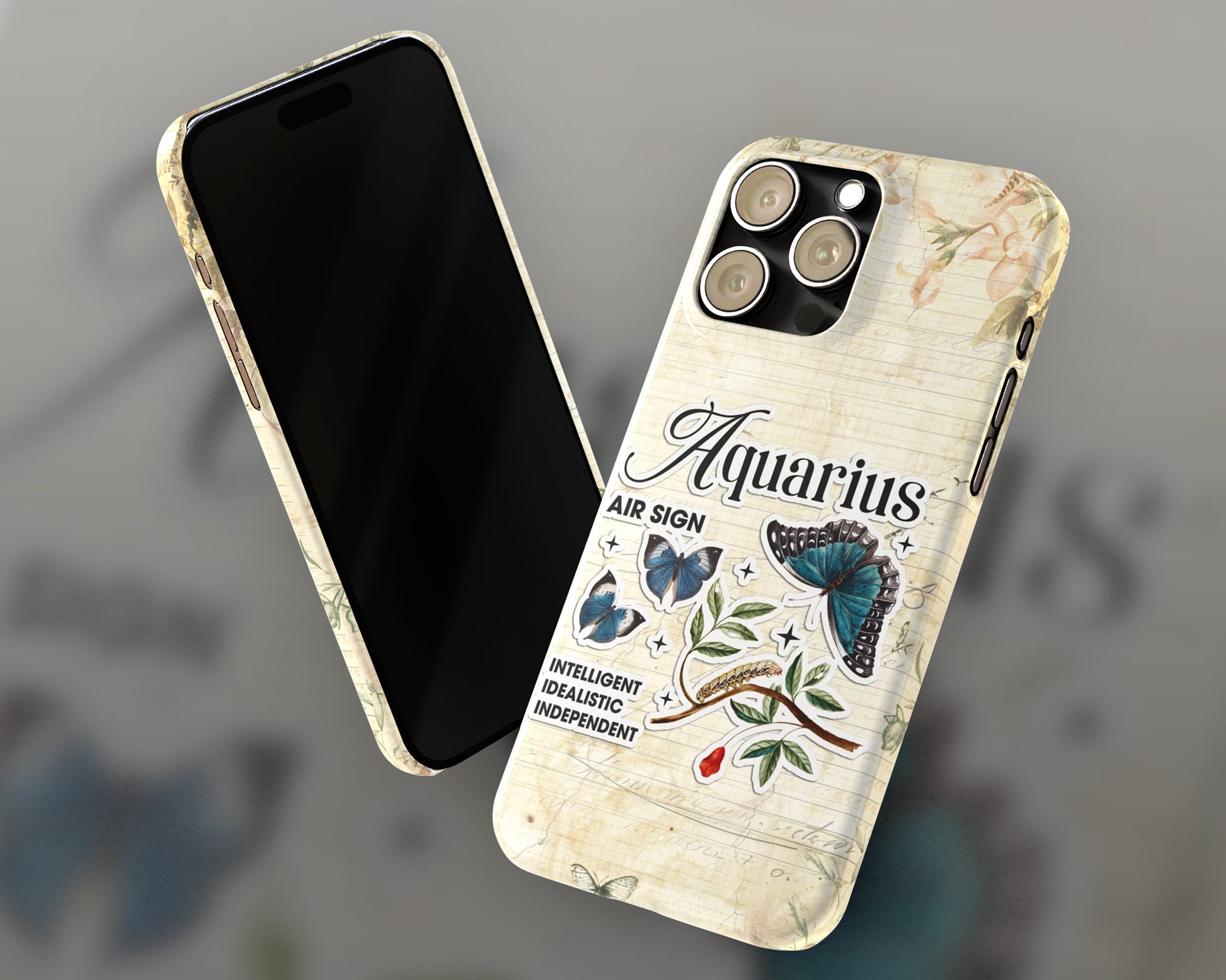 Aquarius Zodiac sign vintage scrapbook with butterfly stickers iPhone case