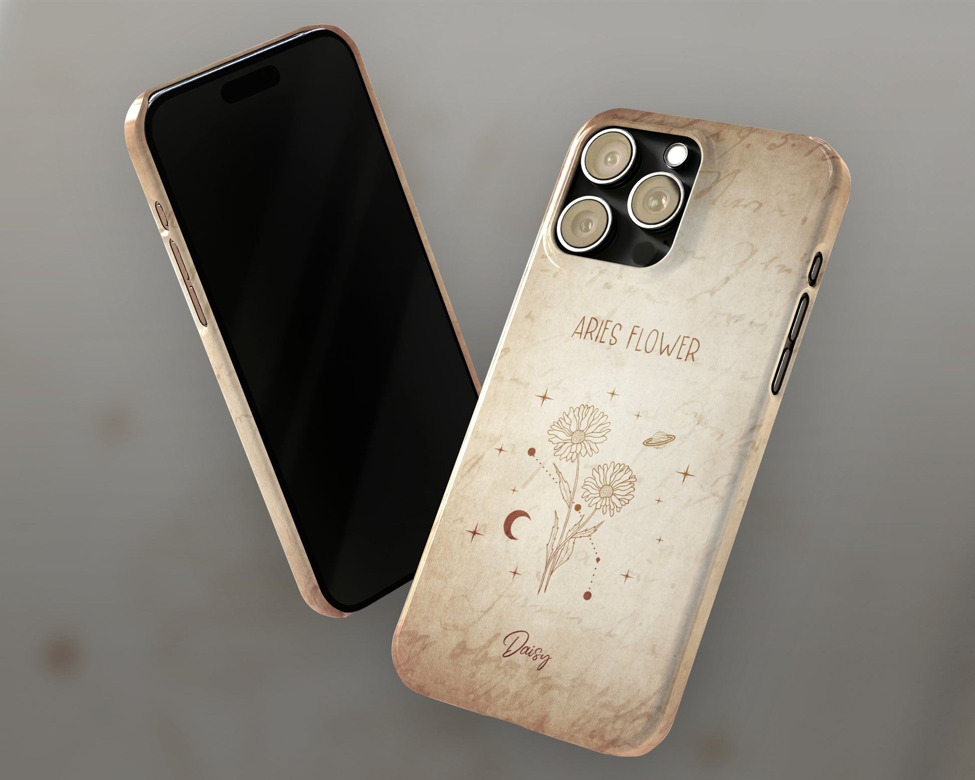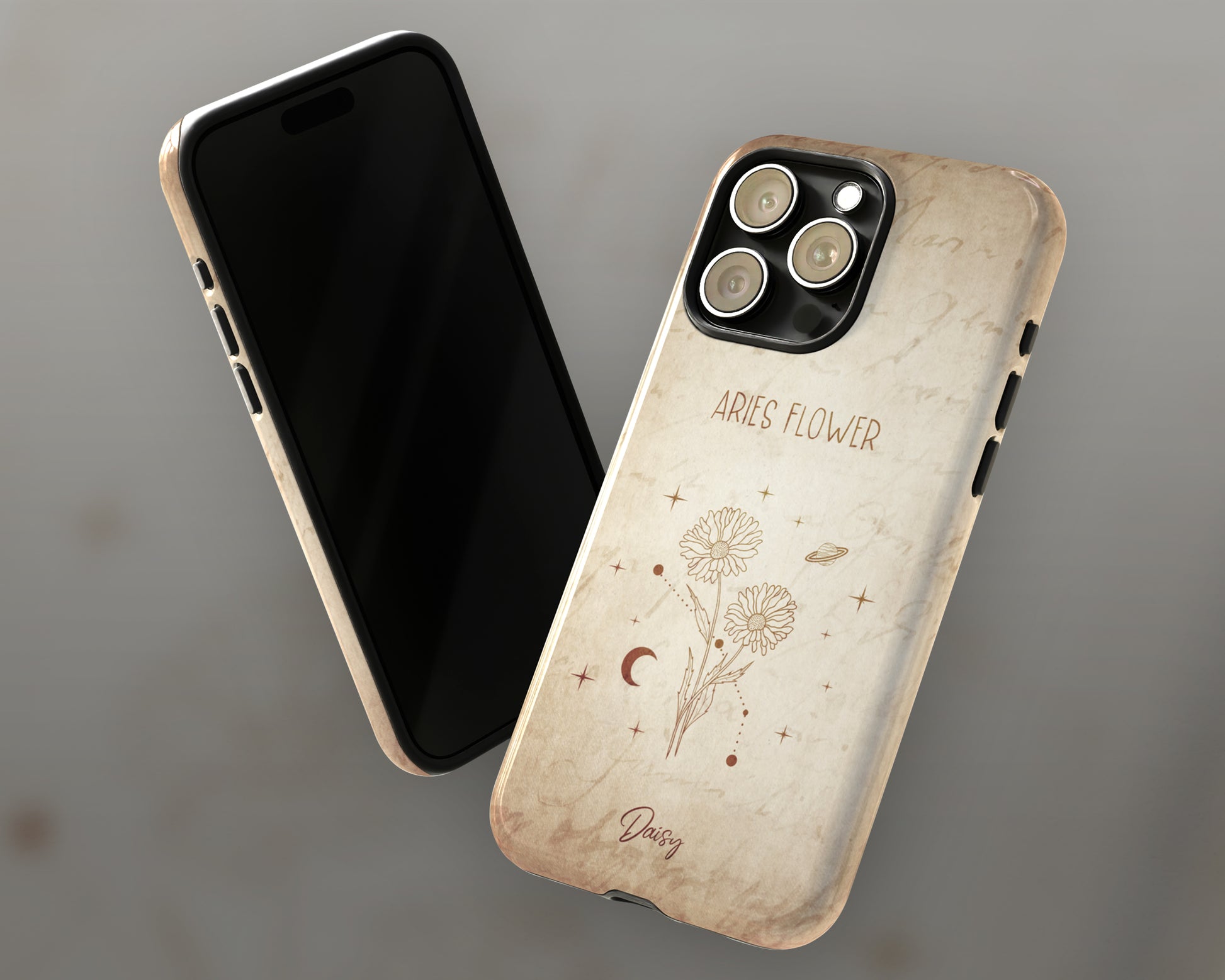 Aries Zodiac sign birth month flower in hand-drawn line art on vintage paper iPhone case
