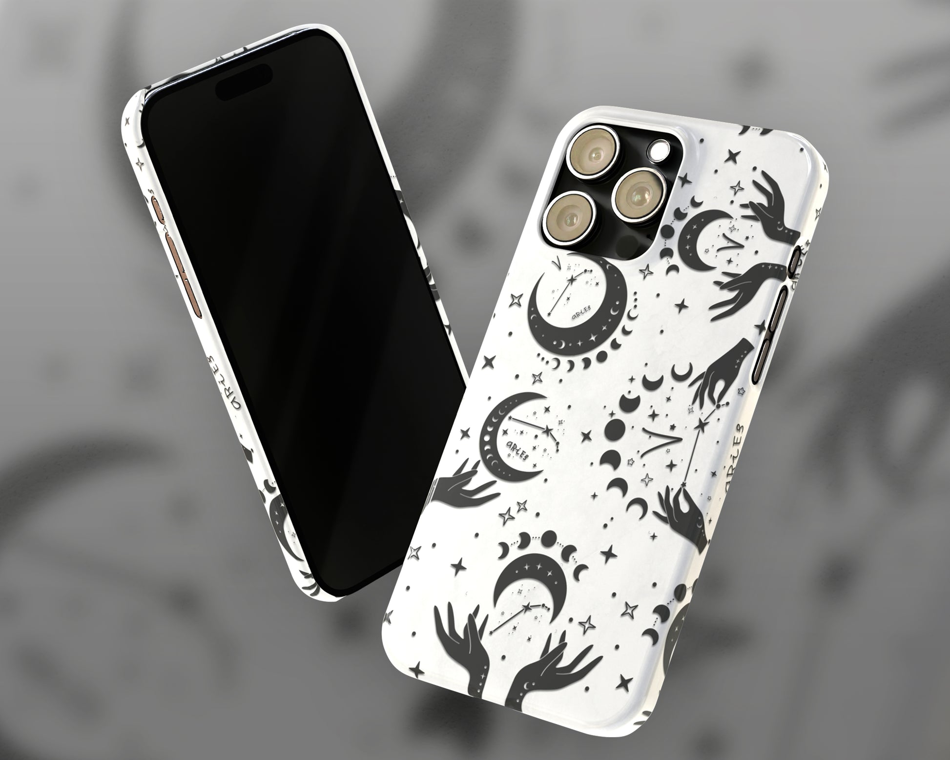 Aries Zodiac sign black celestial symbols on white background iPhone case