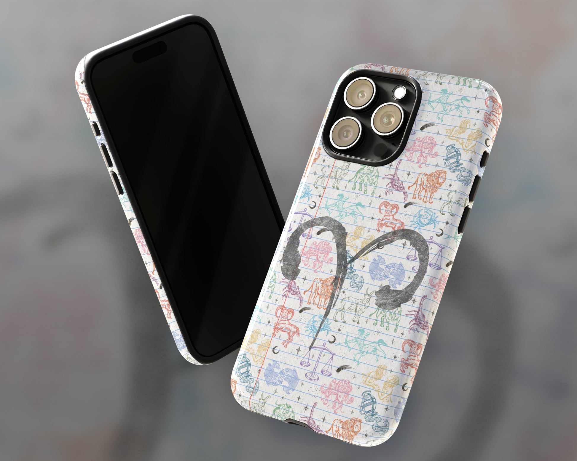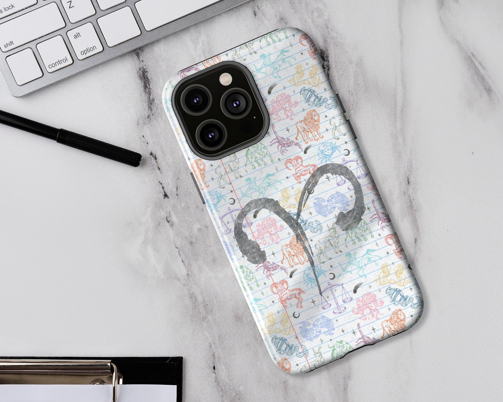 Aries Zodiac sign colorful drawings on notebook iPhone case