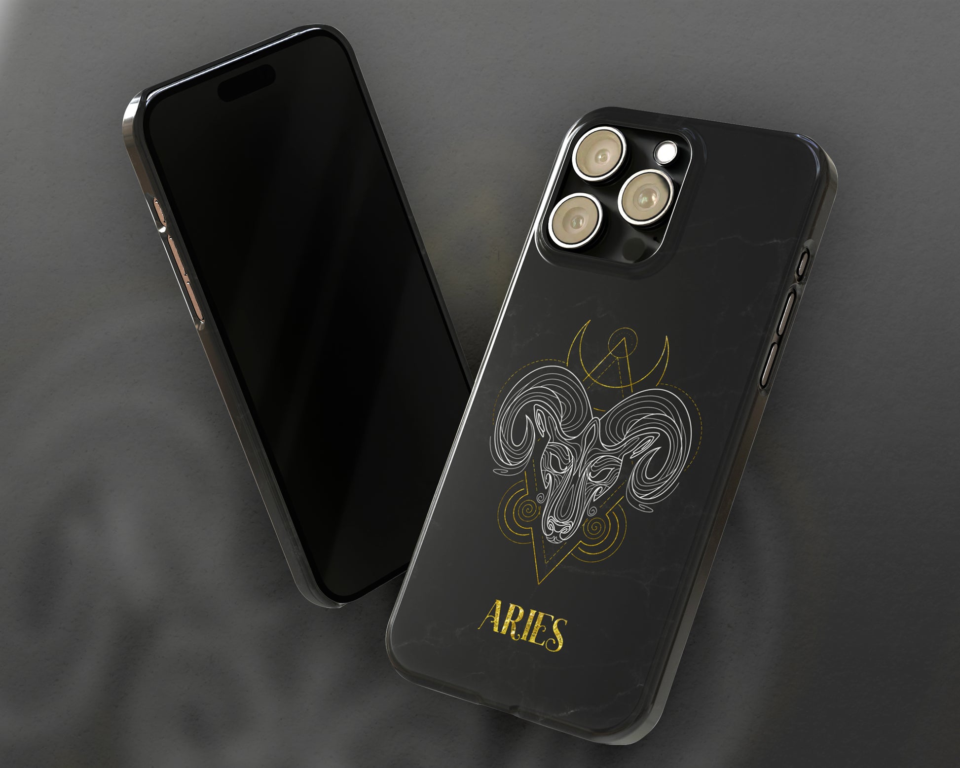 Aries Zodiac sign golden line art black marble iPhone case