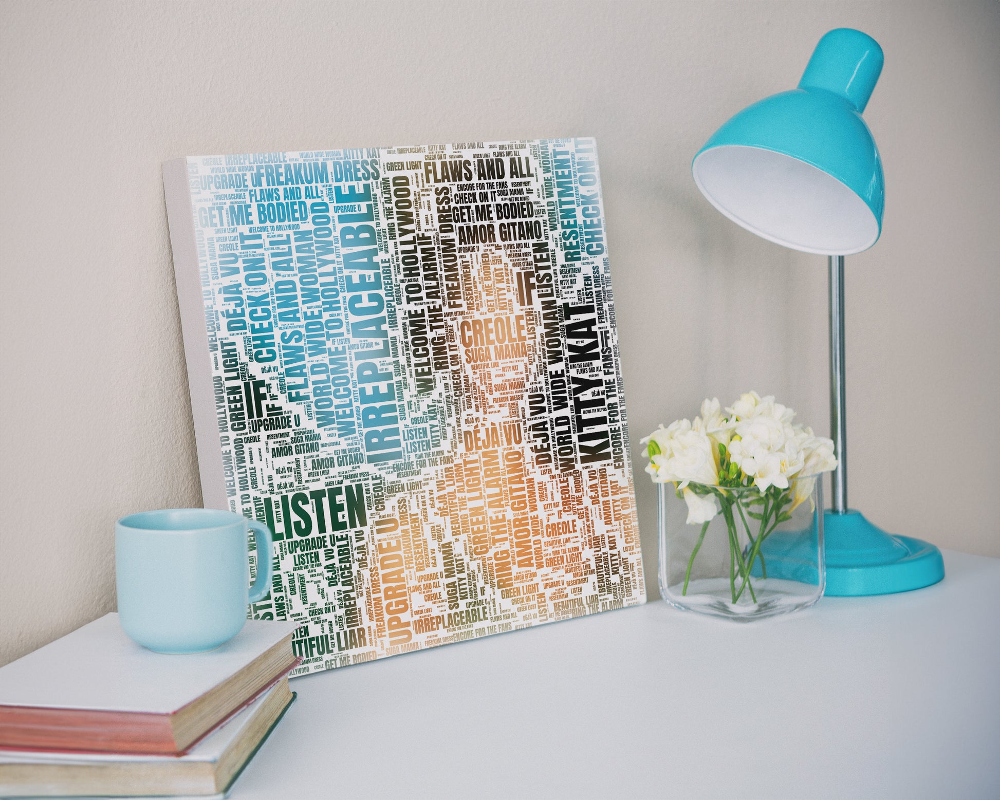 Transform your wall into a stunning work of art. This gorgeous word art design was inspired and created from your favorite album and its song titles. The minimal feel and vivid color make it stand out yet able to fit in with any style of decor. Your space should reflect who you are and what you care about. Adding a pop of color to your walls or desks is an easy way to inject some personality into any room and put a smile on your face. They also make a lovely gift for friends and family.