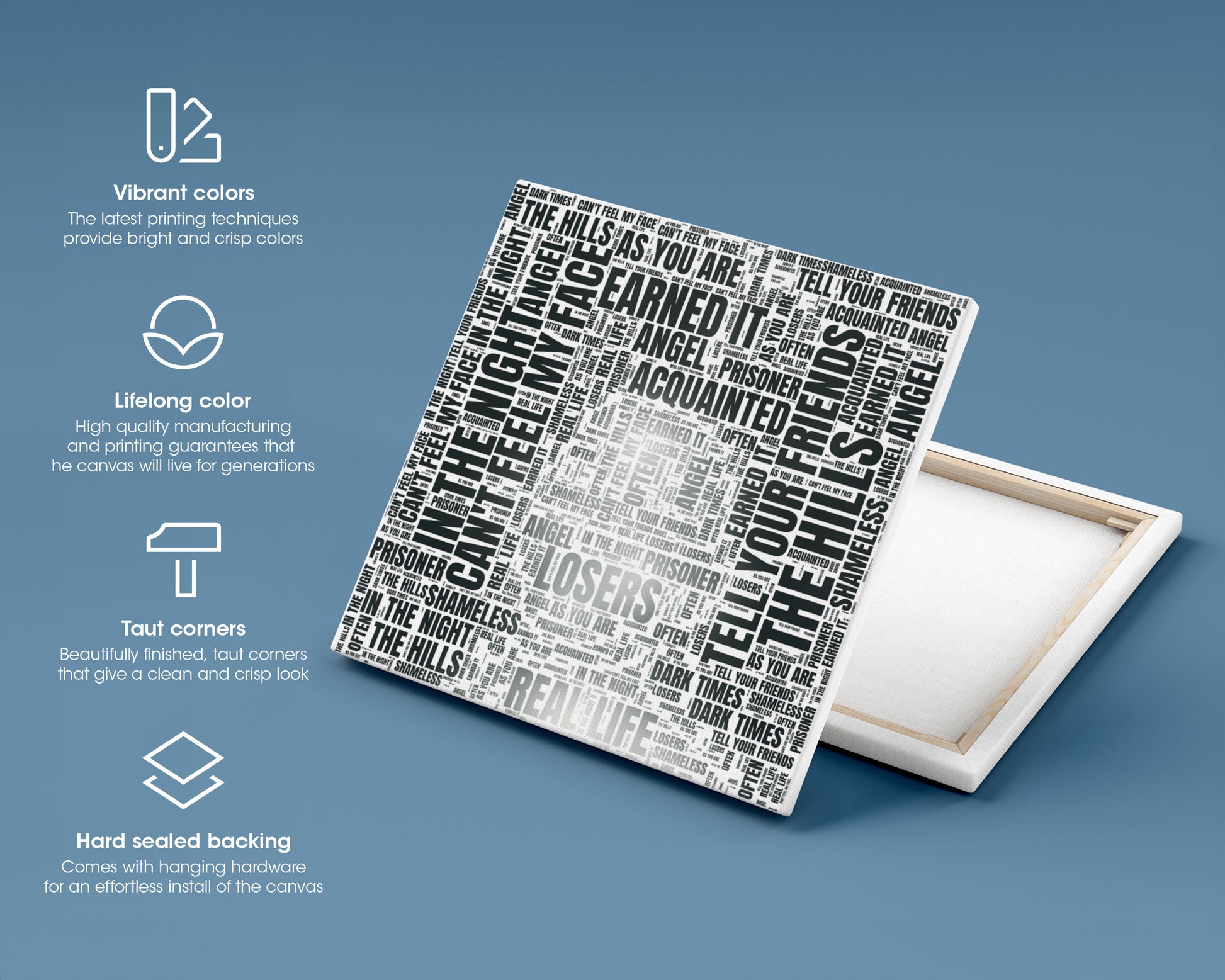 Transform your wall into a stunning work of art. This gorgeous word art design was inspired and created from your favorite album and its song titles. The minimal feel and vivid color make it stand out yet able to fit in with any style of decor. Your space should reflect who you are and what you care about. Adding a pop of color to your walls or desks is an easy way to inject some personality into any room and put a smile on your face. They also make a lovely gift for friends and family.