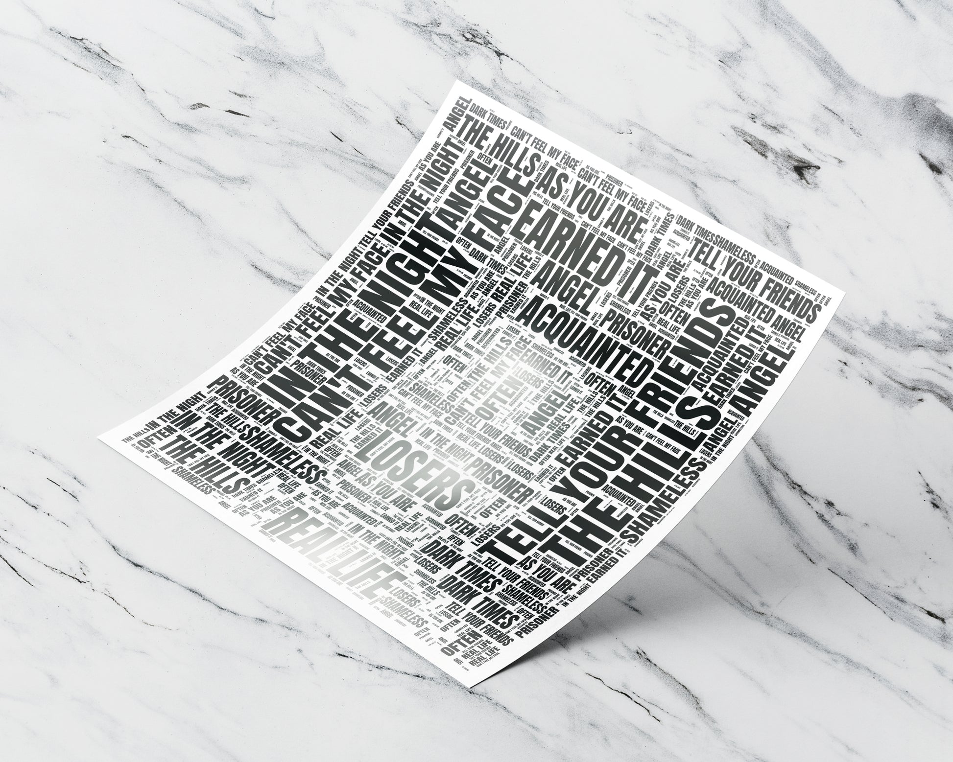 A unique word art design of the album cover art by your favorite artist.