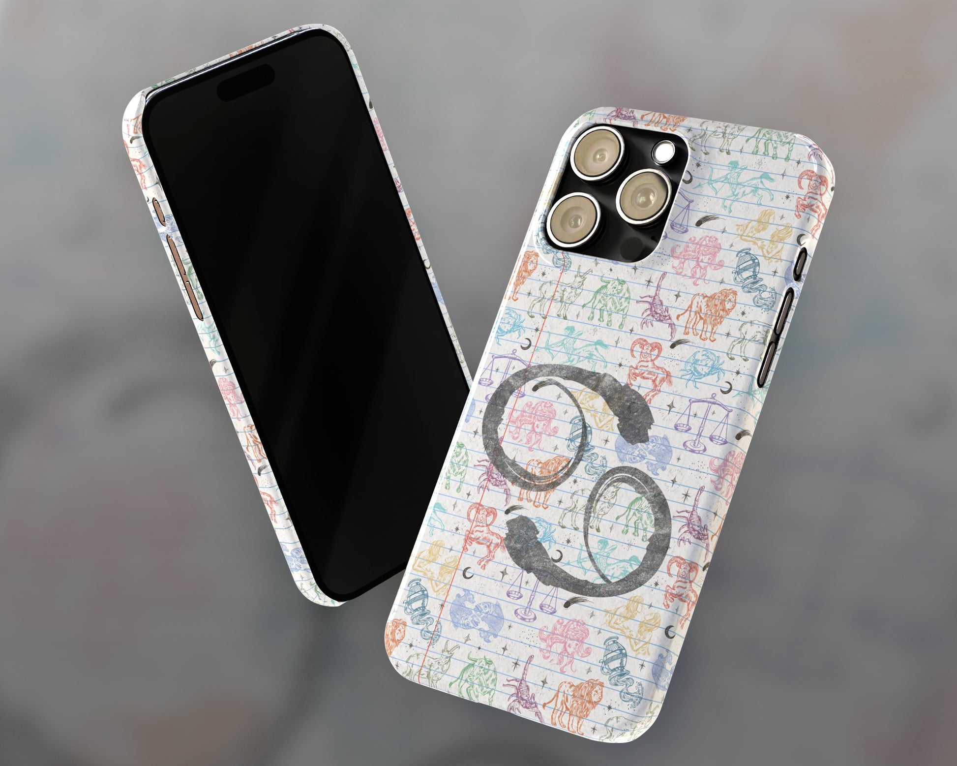 Cancer Zodiac sign colorful drawings on notebook iPhone case