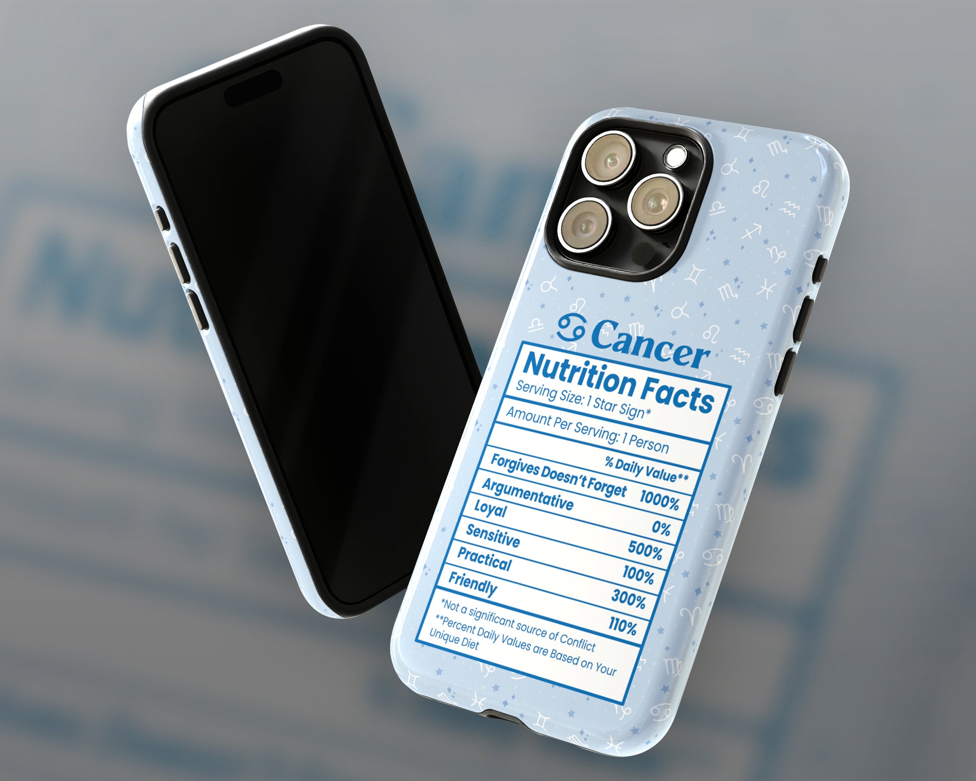 Delve into our artful nutrition facts label spotlighting the distinctive traits and qualities associated with the Cancer zodiac sign. This creative mimic label offers a whimsical portrayal of Cancer's nurturing essence, emotional depth, and intuitive nature. Enjoy this imaginative depiction that encapsulates the unique attributes of the Cancer sign, ingeniously crafted within the mimicry of a nutrition facts label.