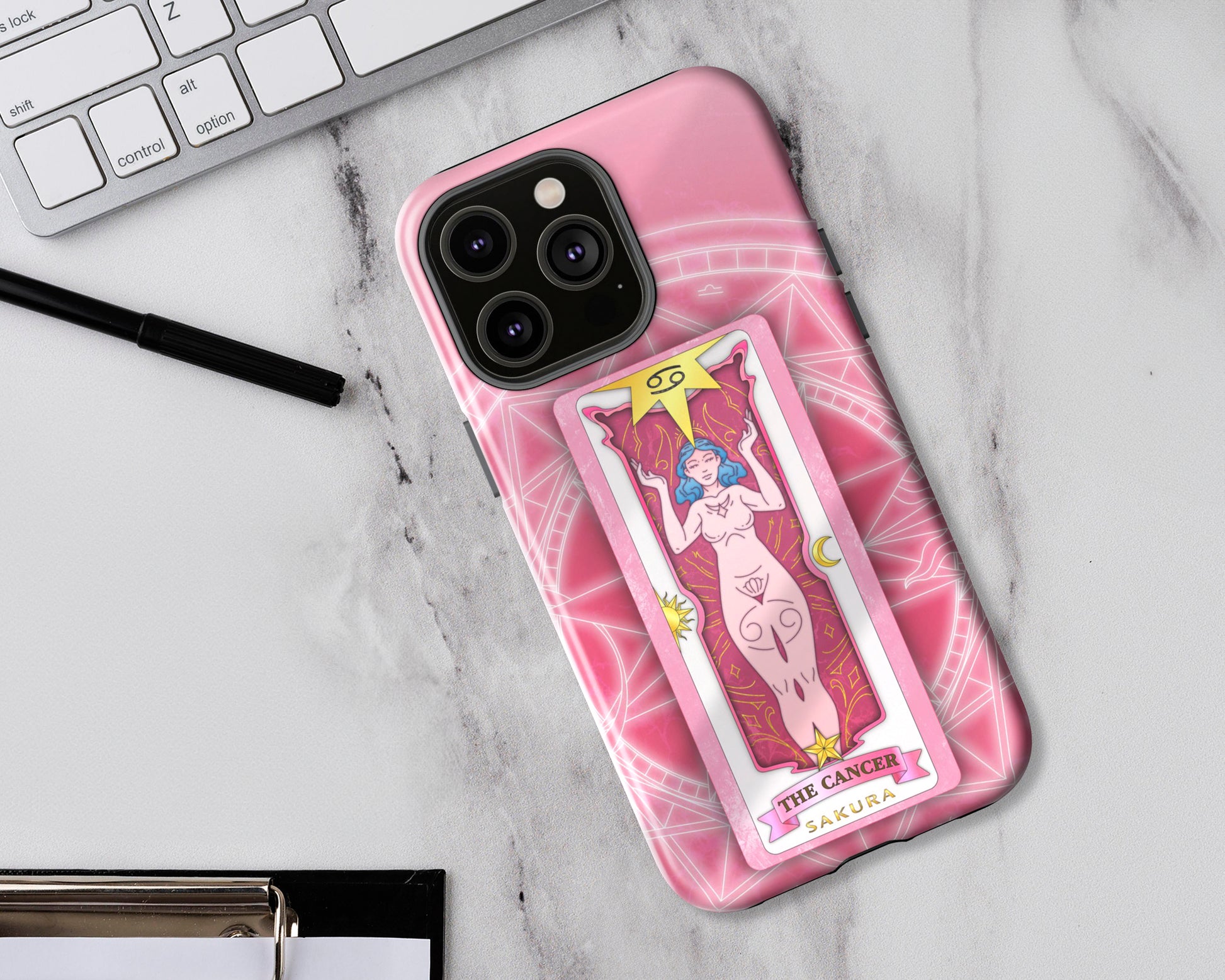 Cancer Zodiac sign Sakura card on magic circle anime iPhone case