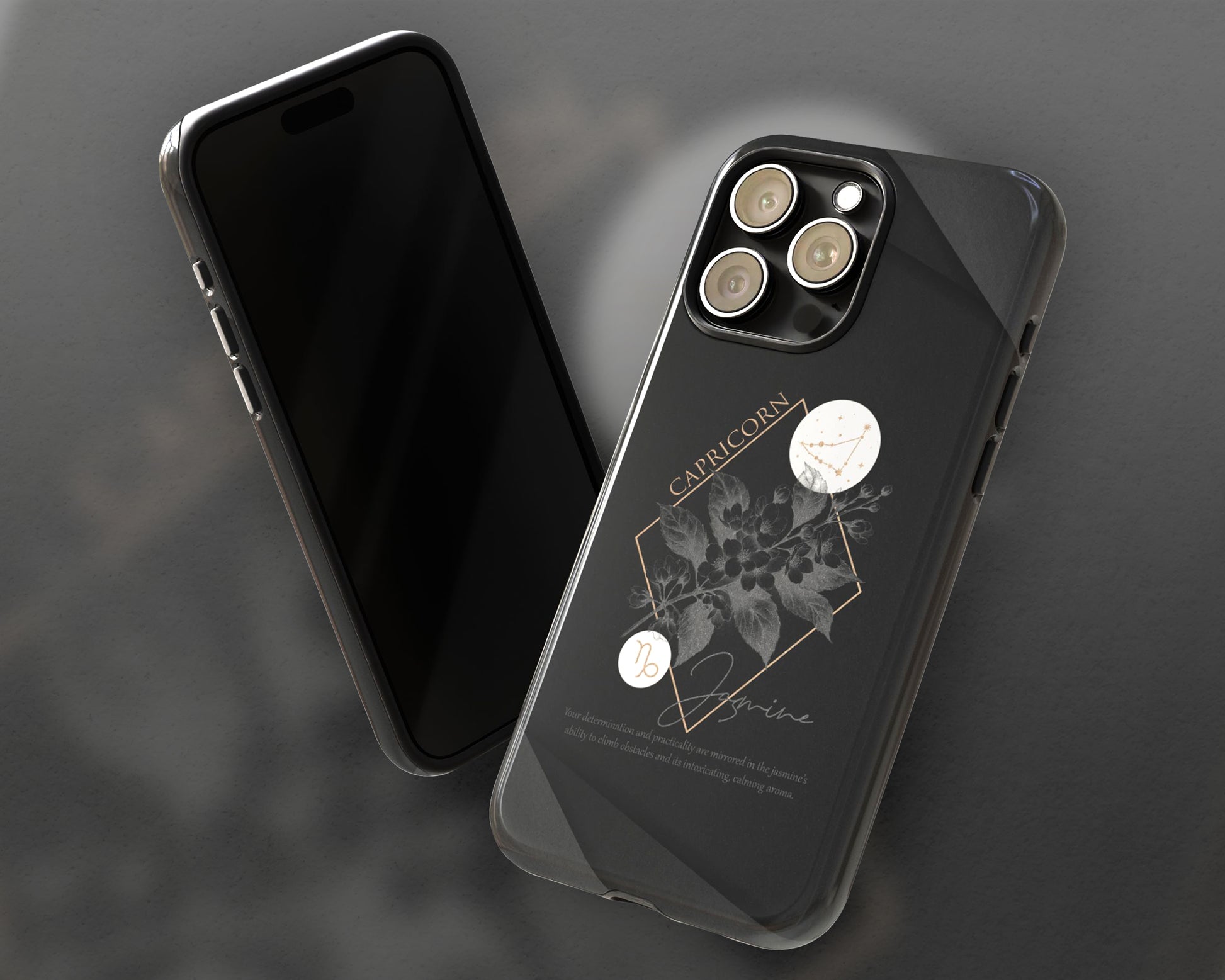 Capricorn Zodiac sign birth flowers on black papers iPhone case