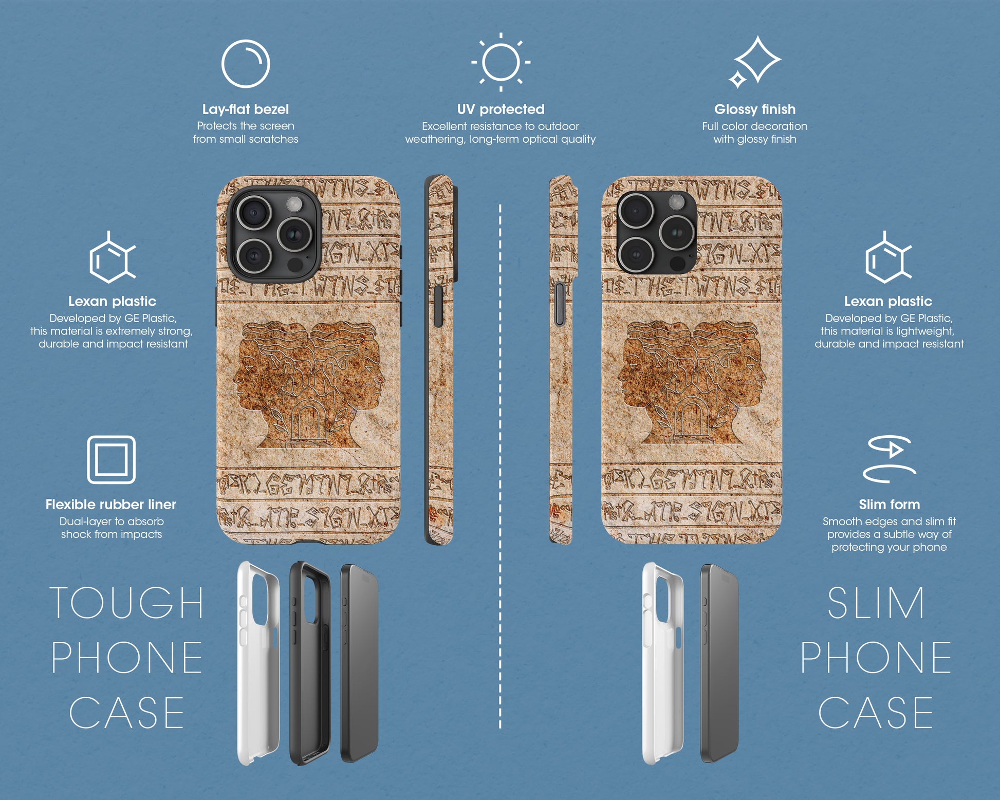 Gemini Zodiac ancient hieroglyphics on stone iPhone case