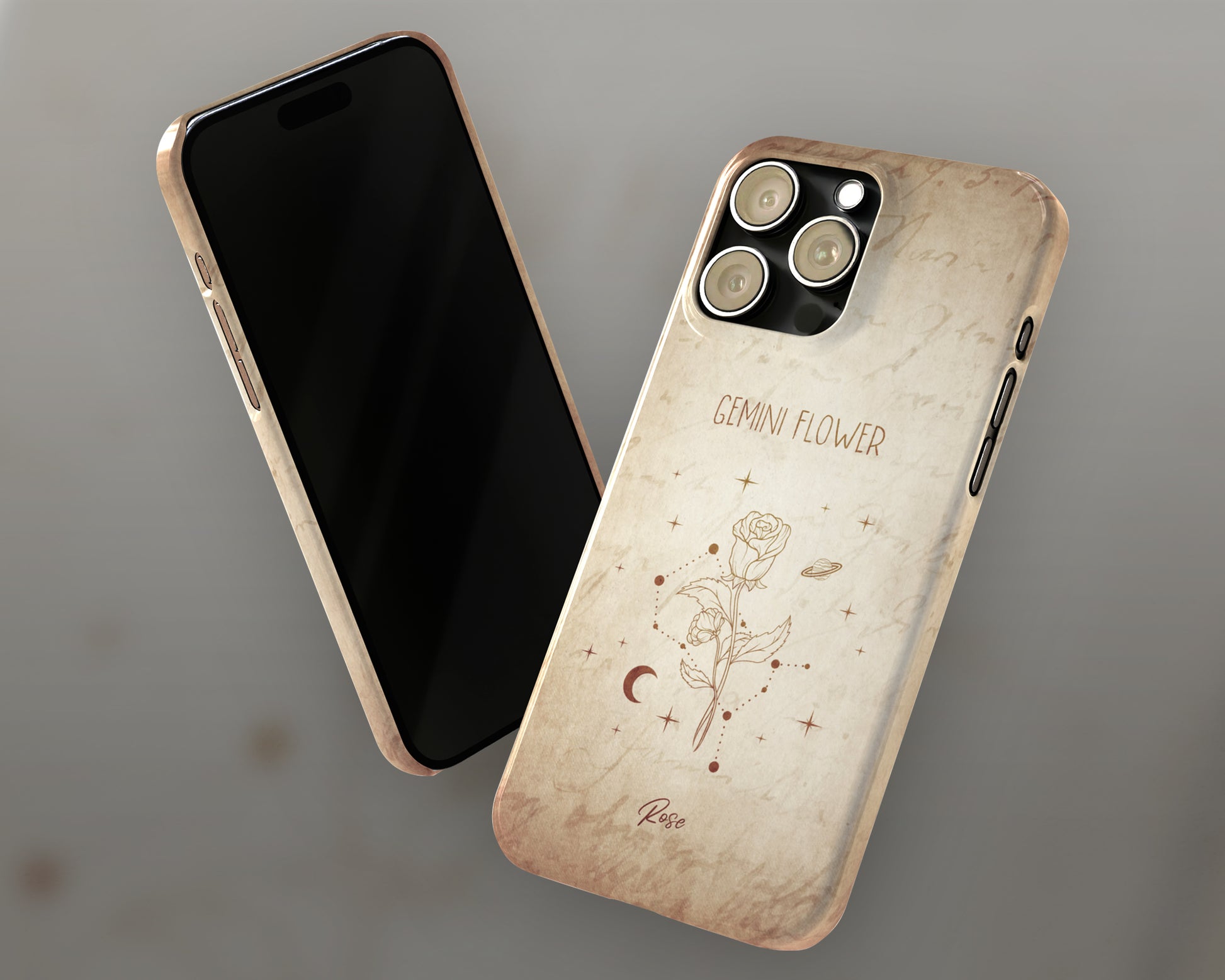 Gemini Zodiac sign birth month flower in hand-drawn line art on vintage paper iPhone case
