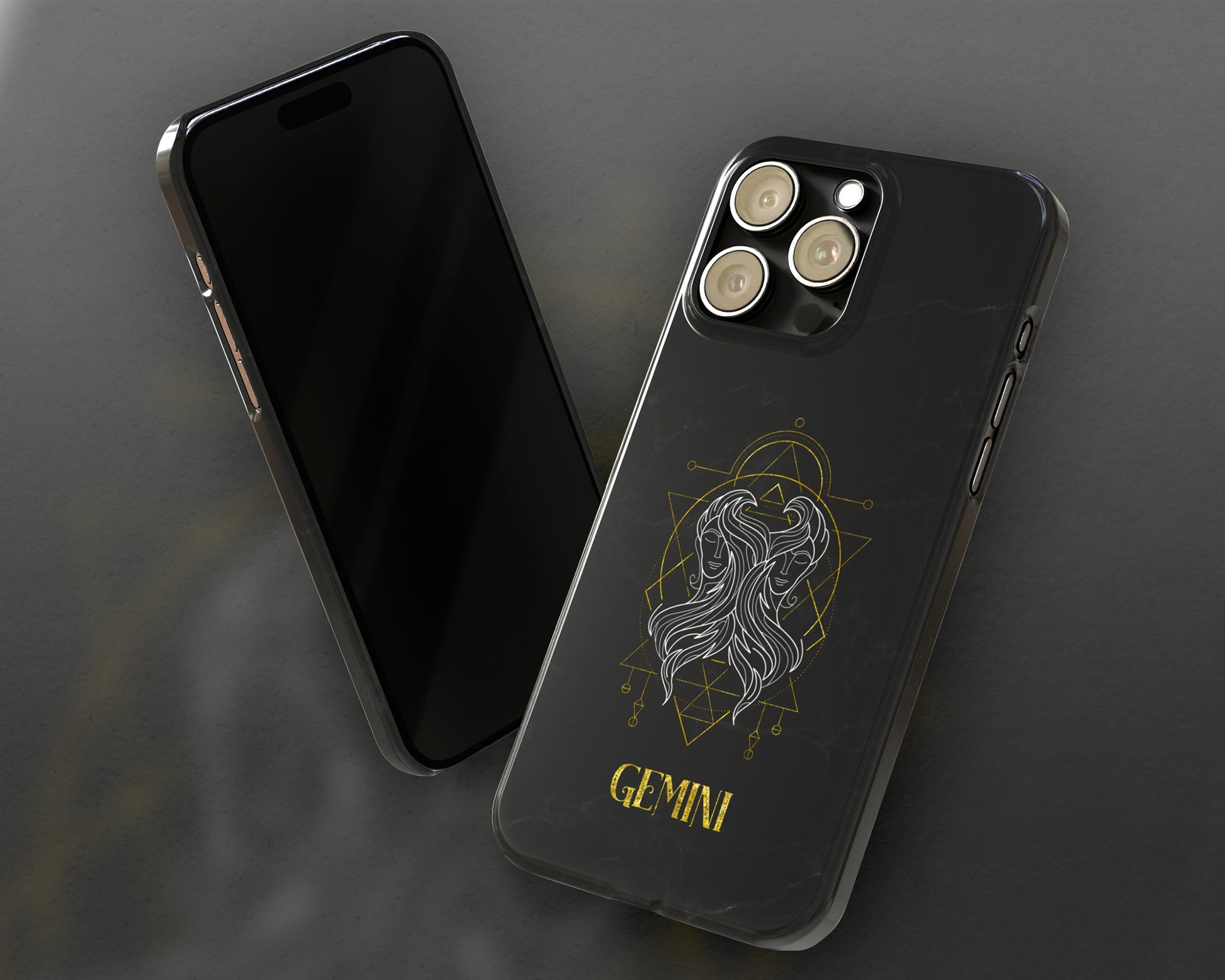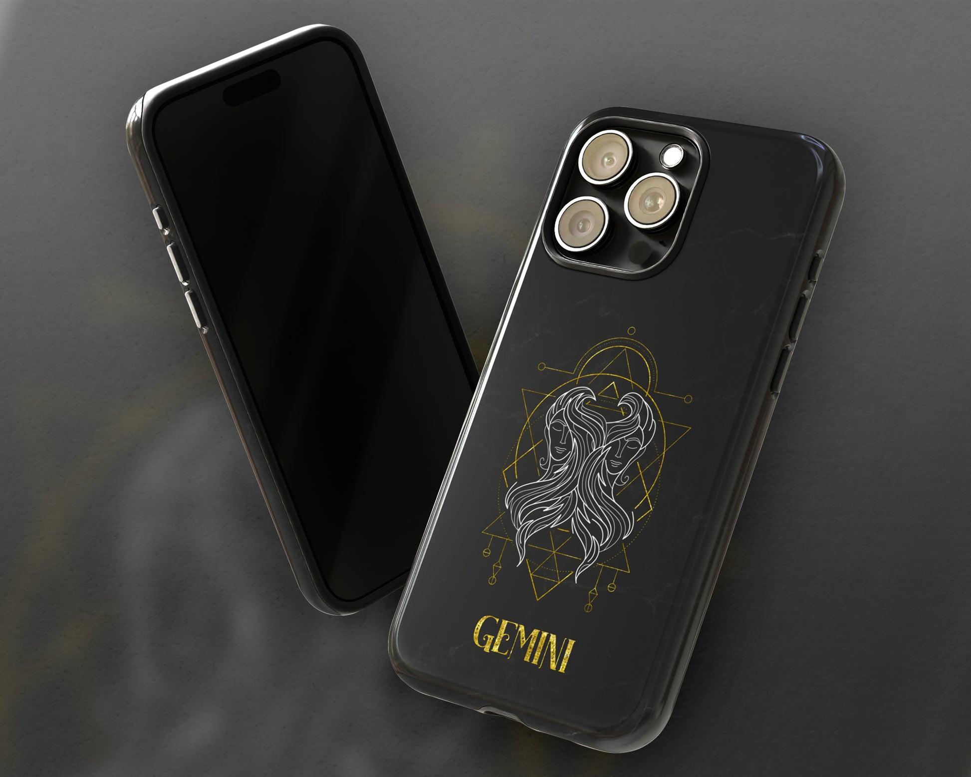 Gemini Zodiac sign golden line art black marble iPhone case