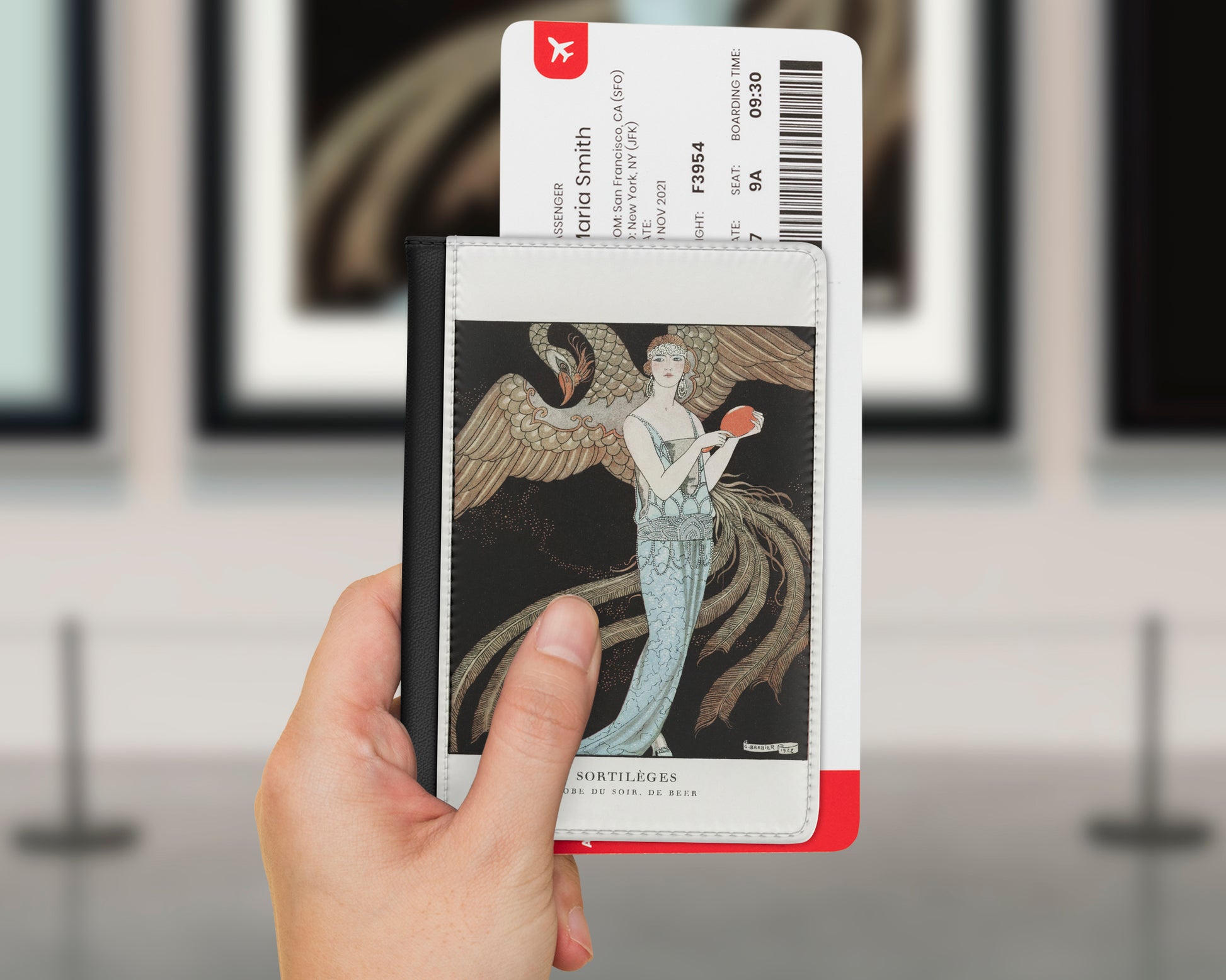 Travel with elegance using our passport covers inspired by renowned masterpieces. Designed to keep your passport and cards secure, these sturdy, padded wallets combine timeless artistic beauty with practical functionality - perfect for art lovers who appreciate style and reliability on every journey.