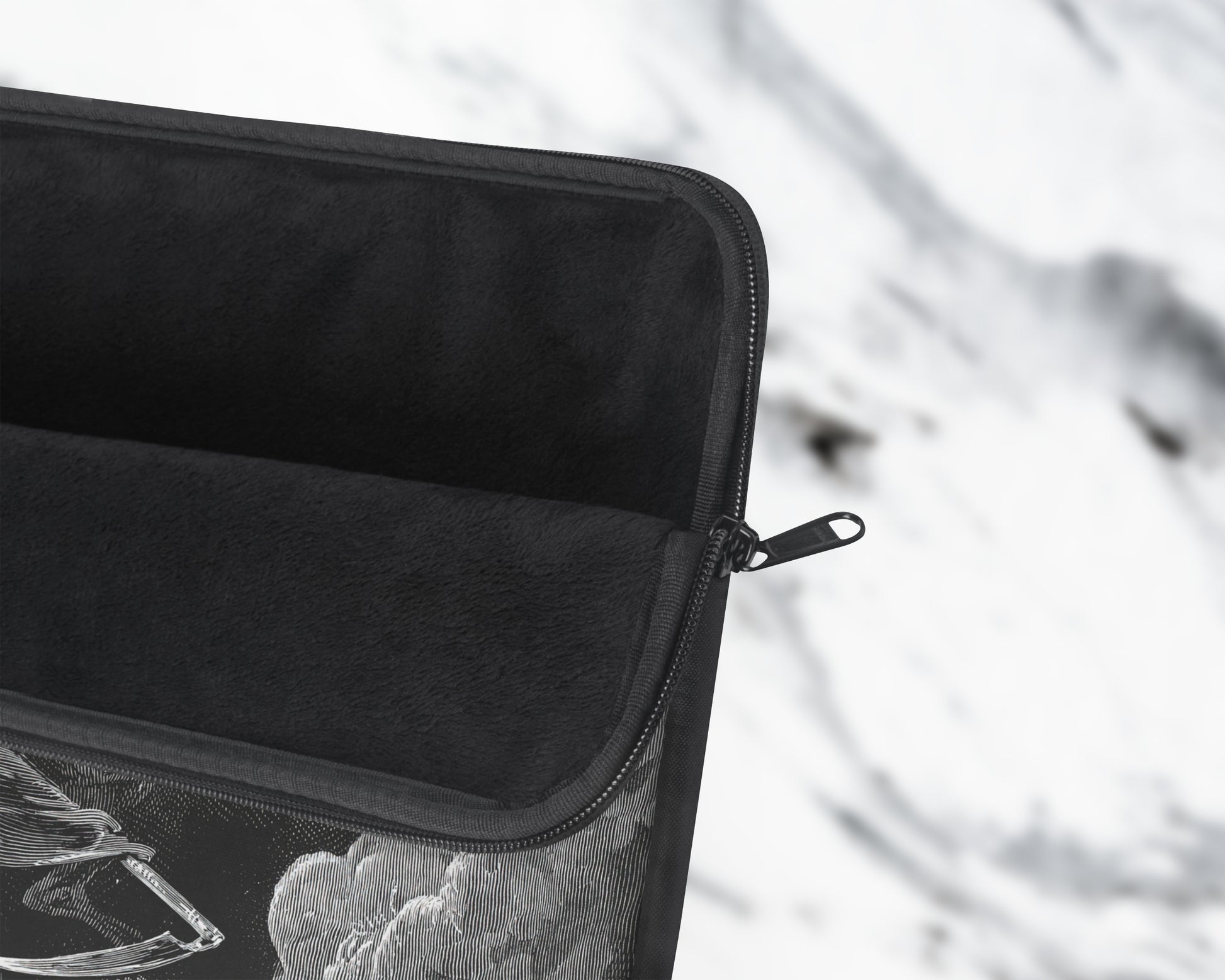 Carry your laptop with style! This high-quality sleeve is available in three sizes to protect your laptop from scratches and minor impacts. Printed on one side with a black backside, edging, and zip, it's an elegant and stylish companion from day to day.