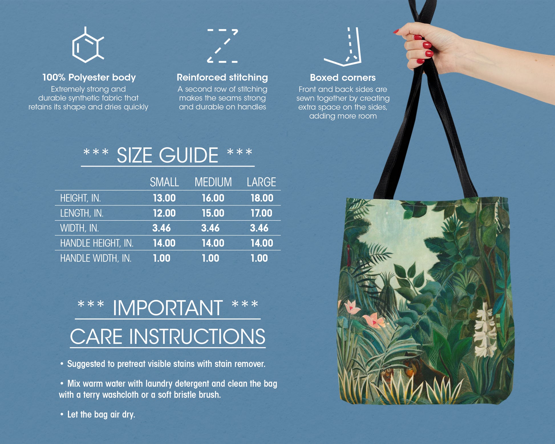 • 14" (35.56cm) length black cotton handles