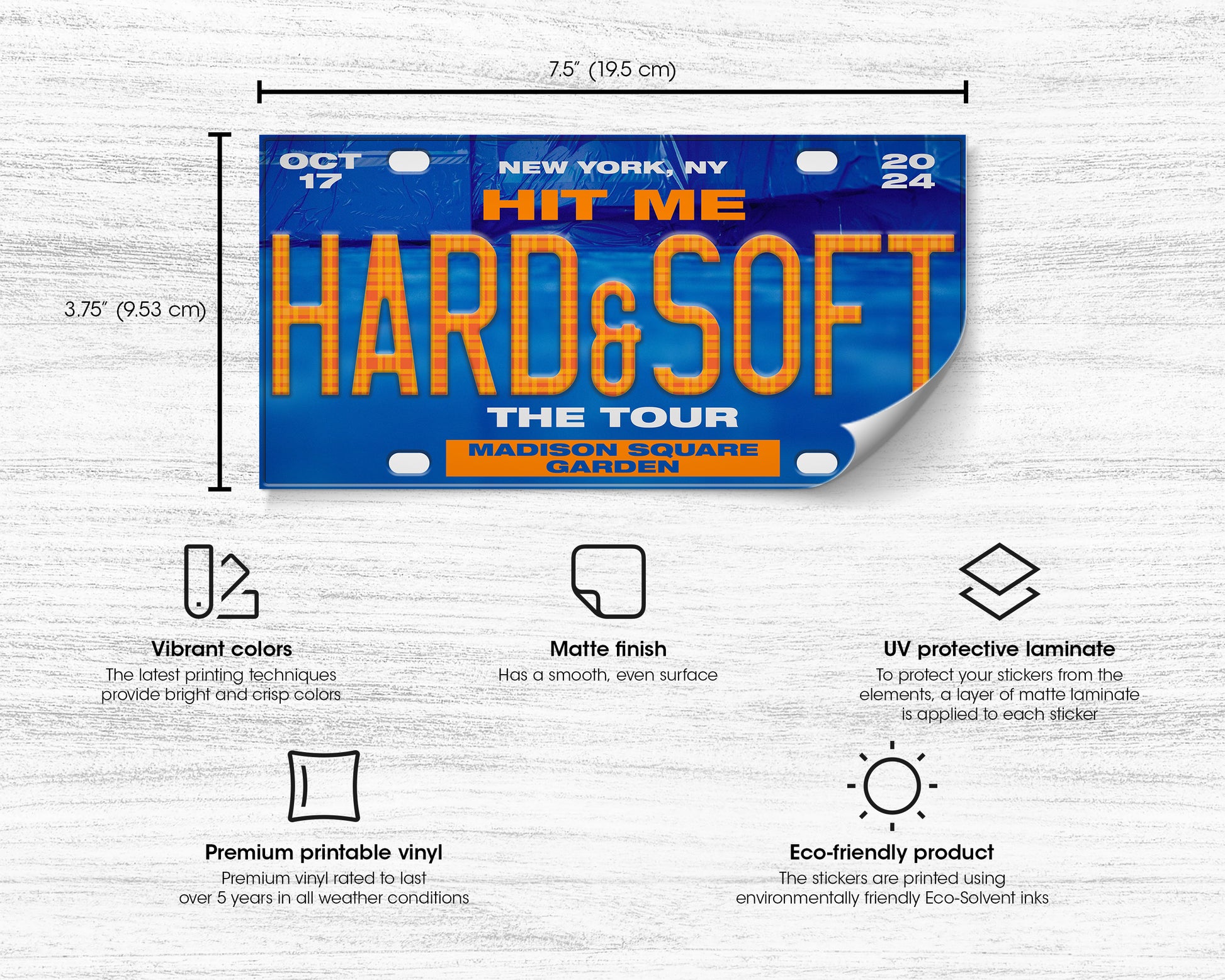 Customizable bumper sticker. Concert merch, car vinyl stickers, license plate decals, car accessories.