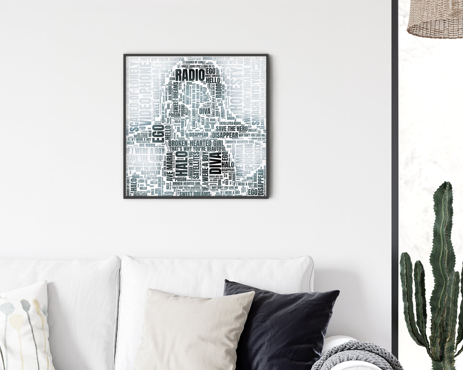 Transform your wall into a stunning work of art. This gorgeous word art design was inspired and created from your favorite album and its song titles. The minimal feel and vivid color make it stand out yet able to fit in with any style of decor. Your space should reflect who you are and what you care about. Adding a pop of color to your walls or desks is an easy way to inject some personality into any room and put a smile on your face. They also make a lovely gift for friends and family.