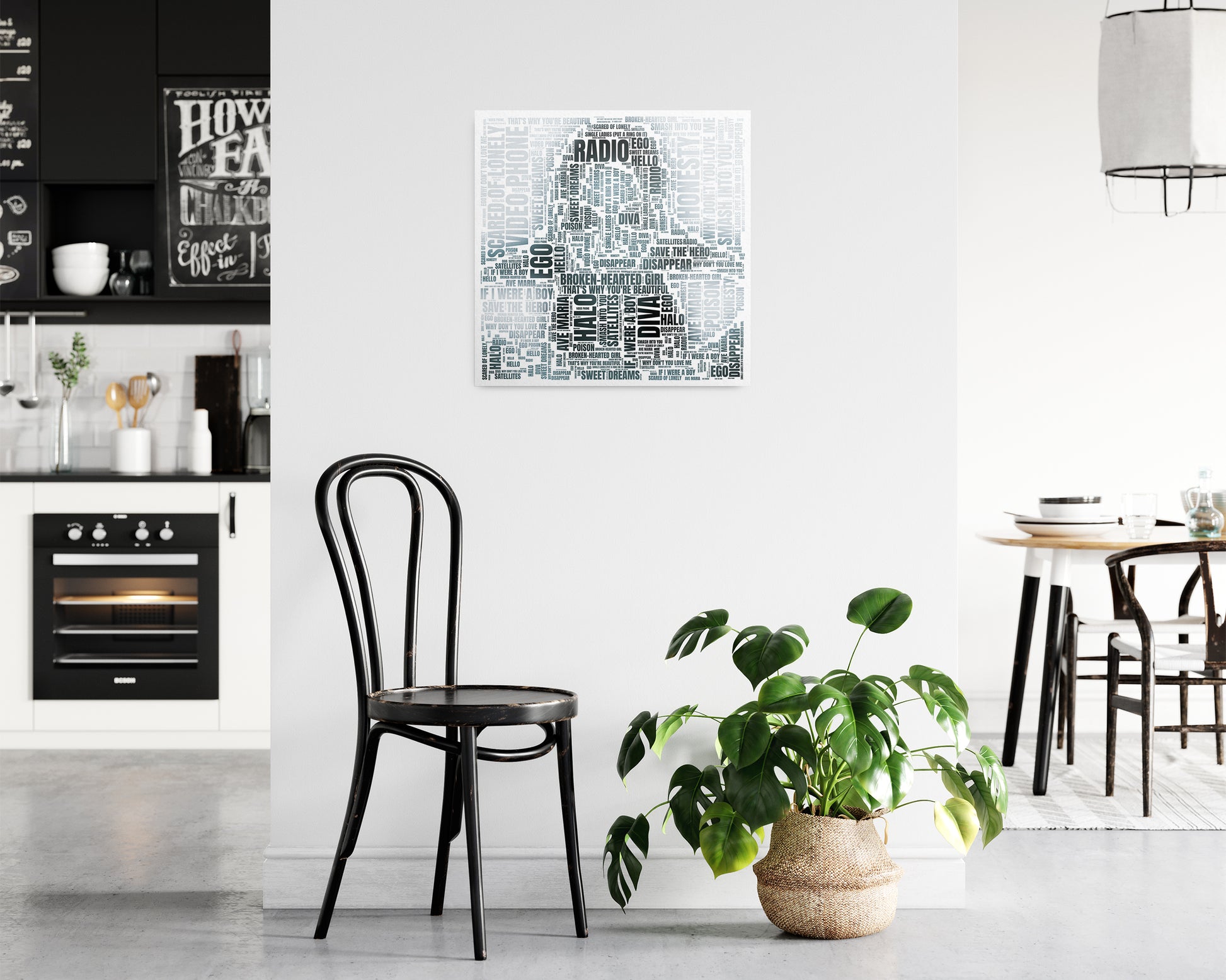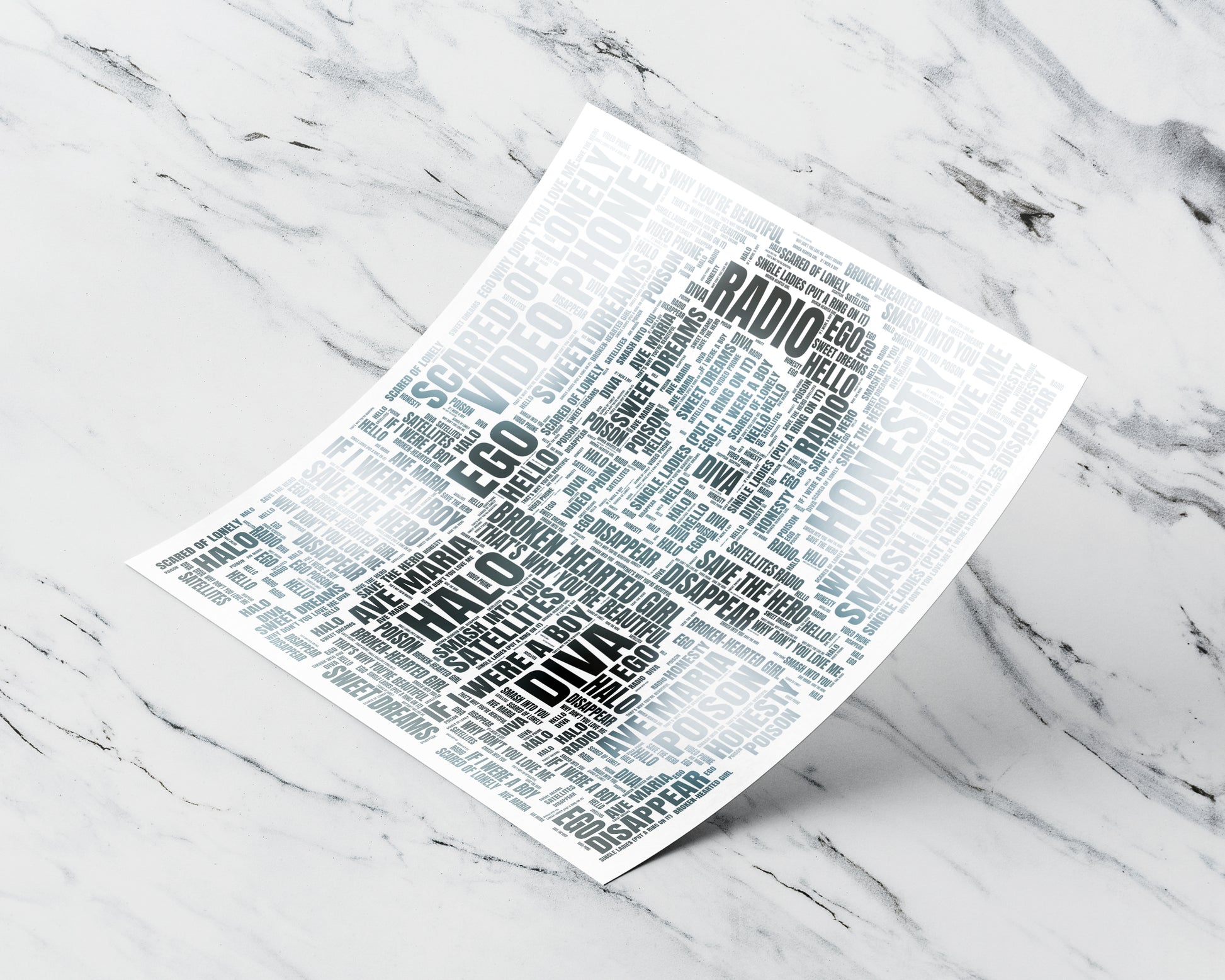 A unique word art design of the album cover art by your favorite artist.