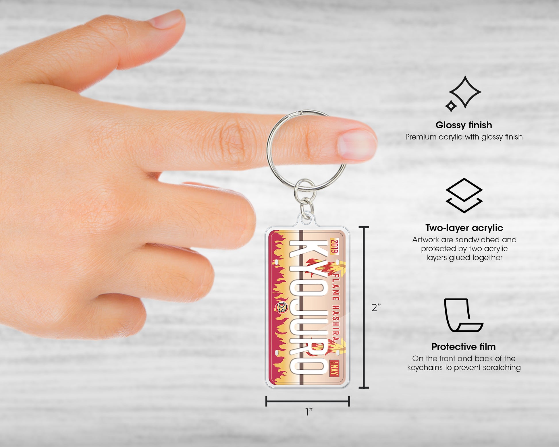 This little license plate acrylic keychain was designed and inspired by your favorite anime character. The minimal feel and vivid color make them stand out yet able to fit in with any style of decor. Your belongings should reflect who you are and what you care about. Adding a pop of color to your keychain is an easy way to inject some personality and put a smile on your face. They also make a lovely gift for friends and family.