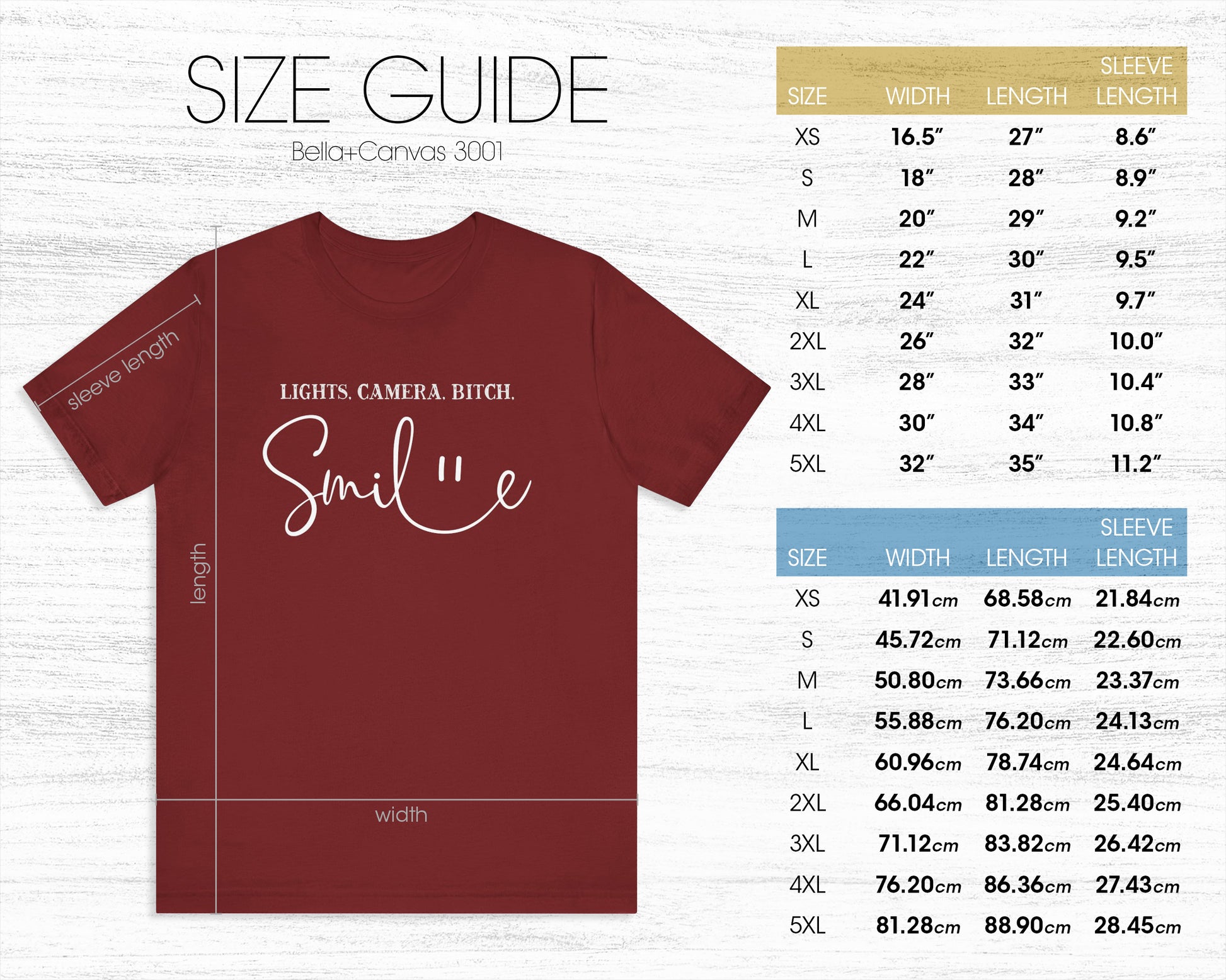 Lights, camera, bitch, smile unisex jersey short sleeve t-shirt