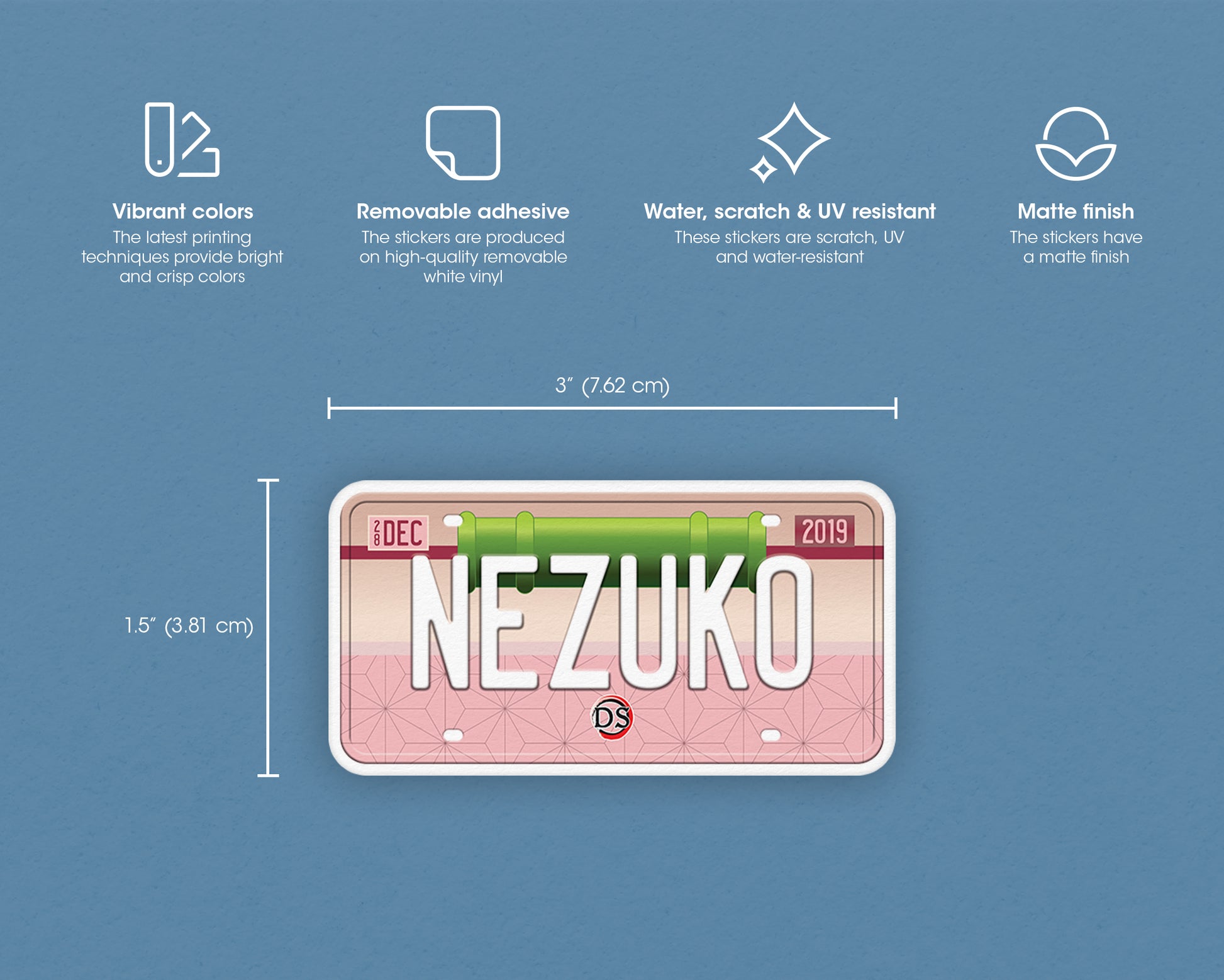 Your favorite anime character inspired this cute matte sticker. They’re made from a removable vinyl that makes them perfect to use on phone cases, laptops, journals, guitars, refrigerators, walls, computers, or whatever needs a dose of originality. Stickers are water-resistant so they also can be used on products that get wet occasionally such as drink bottles, bumpers, cars, helmets, skateboards, and windows. Your belongings should reflect who you are and what you care about. Adding a pop of color to them is an easy way to inject some personality and put a smile on your face. It also makes a lovely gift for friends and family.