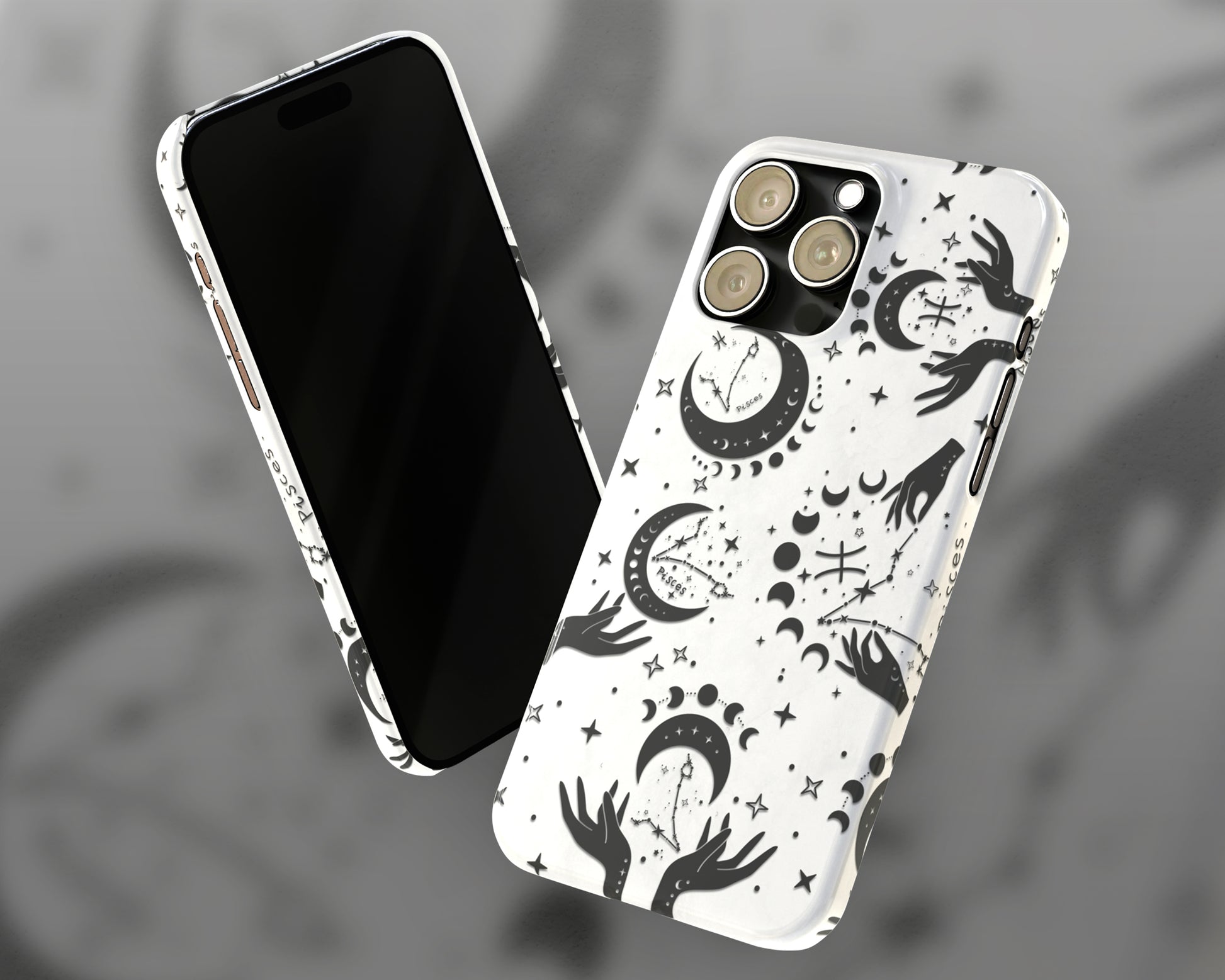 Pisces Zodiac sign black celestial symbols on white background iPhone case