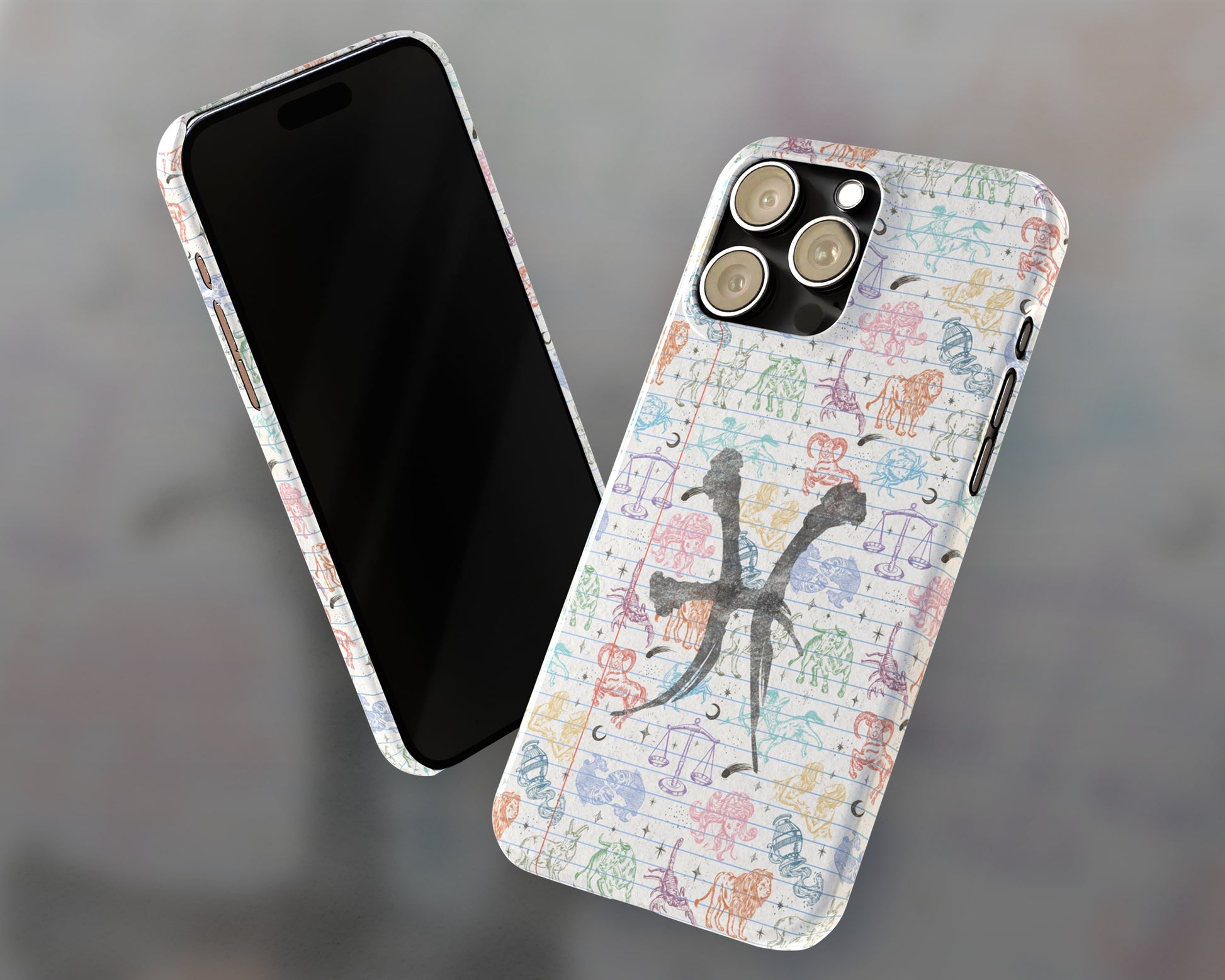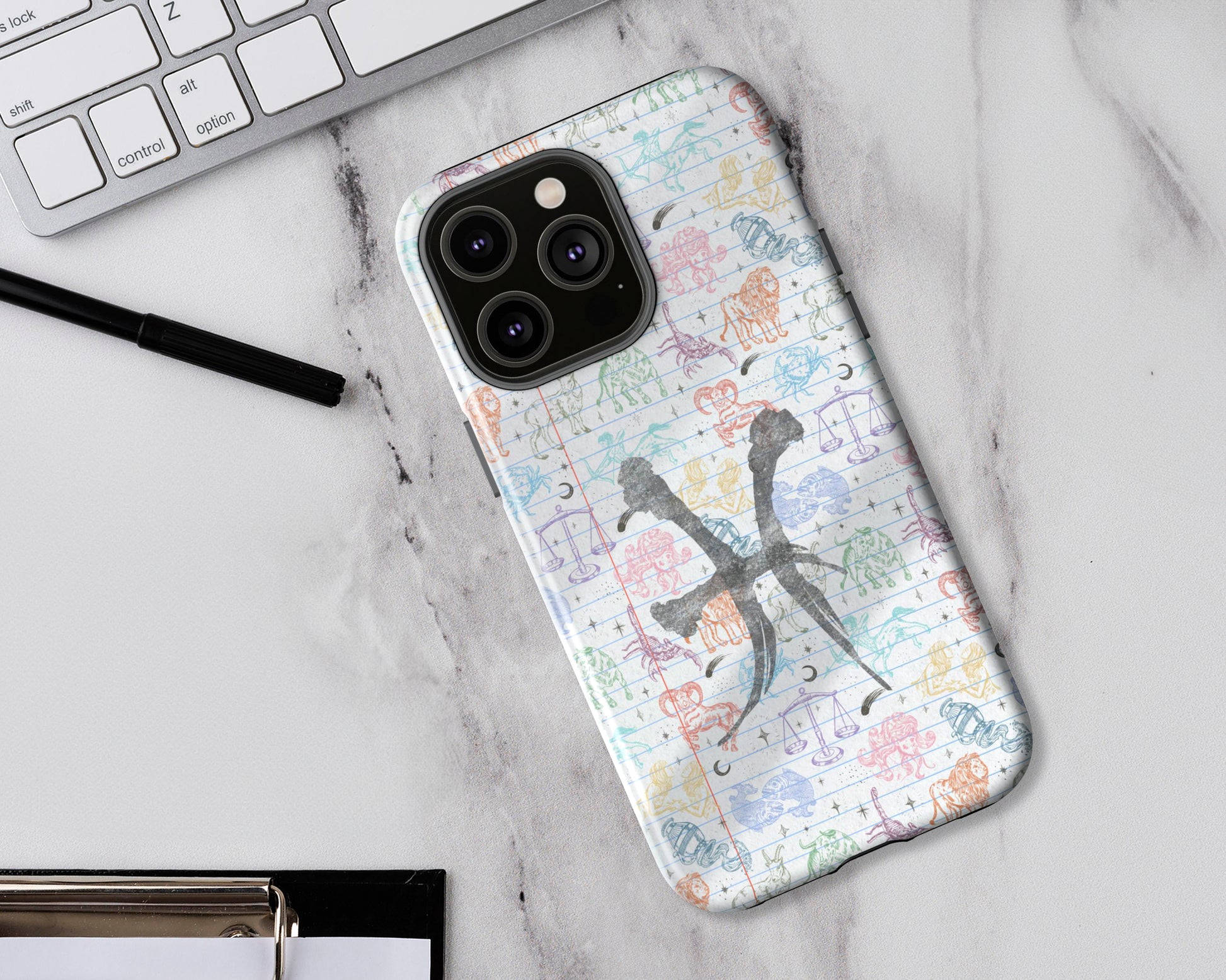 Pisces Zodiac sign colorful drawings on notebook iPhone case