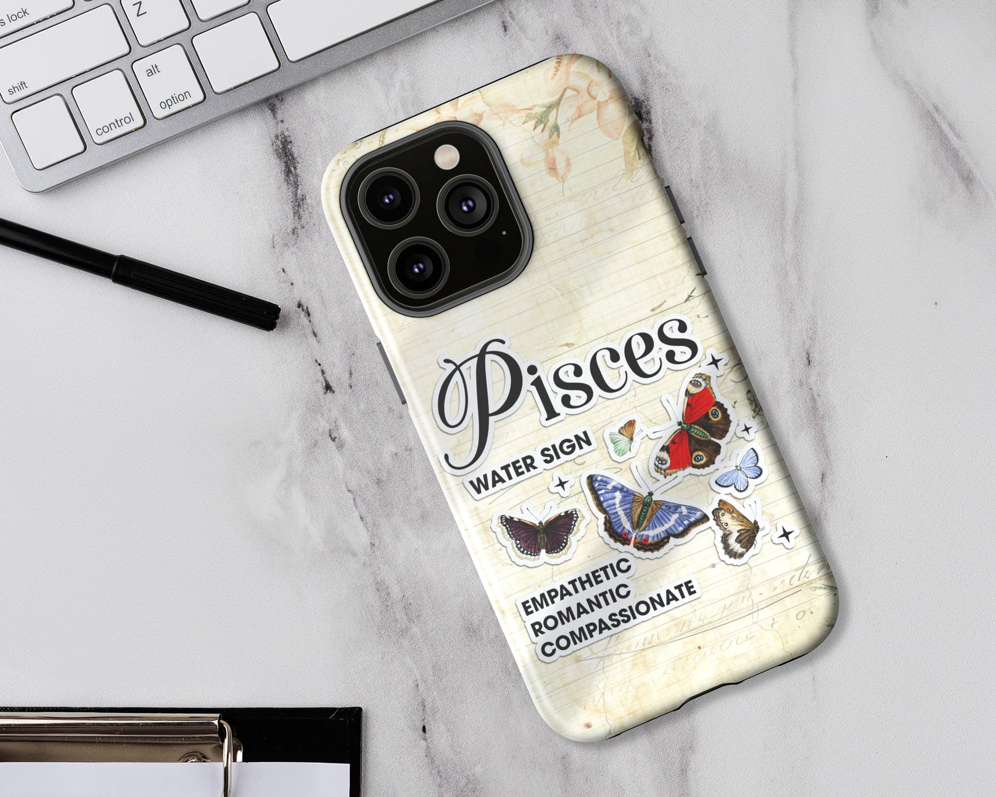 Pisces Zodiac sign vintage scrapbook with butterfly stickers iPhone case