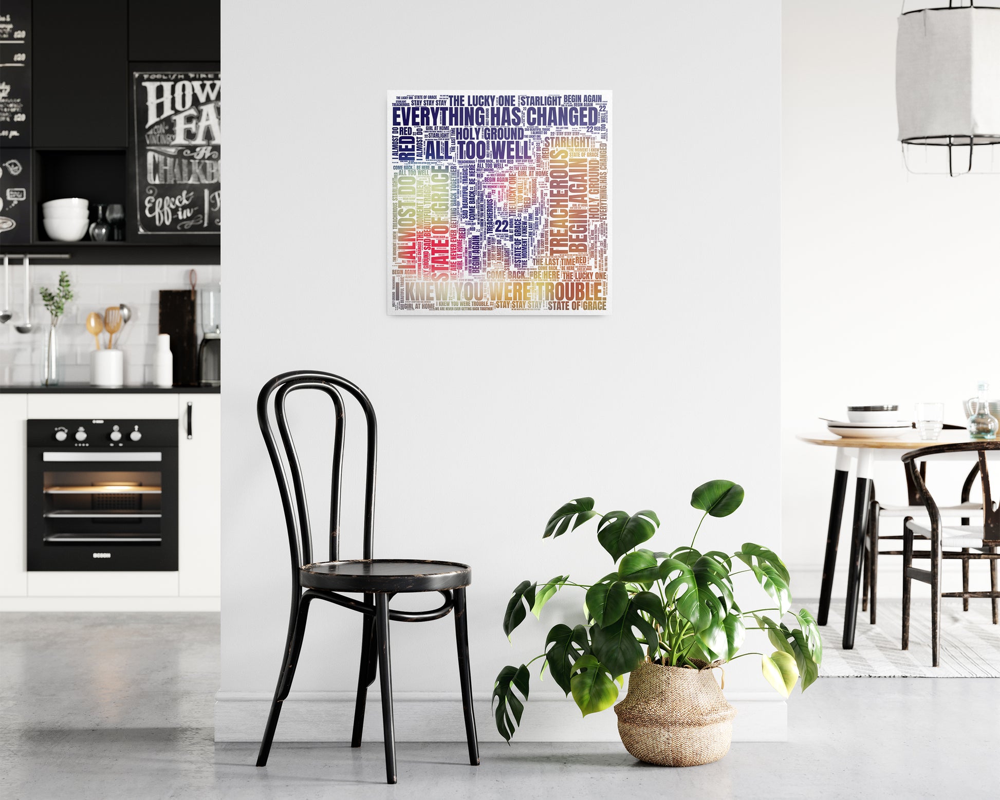 Transform your wall into a stunning work of art. This gorgeous word art design was inspired and created from your favorite album and its song titles. The minimal feel and vivid color make it stand out yet able to fit in with any style of decor. Your space should reflect who you are and what you care about. Adding a pop of color to your walls is an easy way to inject some personality into any room and put a smile on your face. They also make a lovely gift for friends and family.