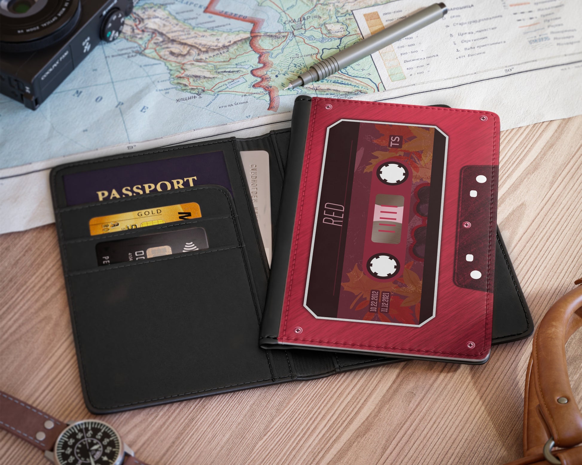 Unique passport cover, travel wallet, card holder, music merch, gift, and accessories.