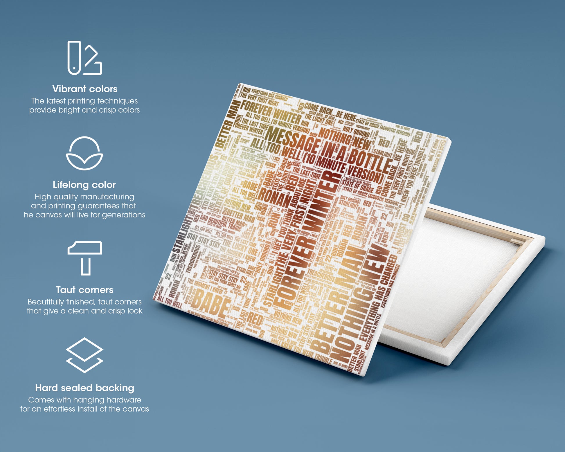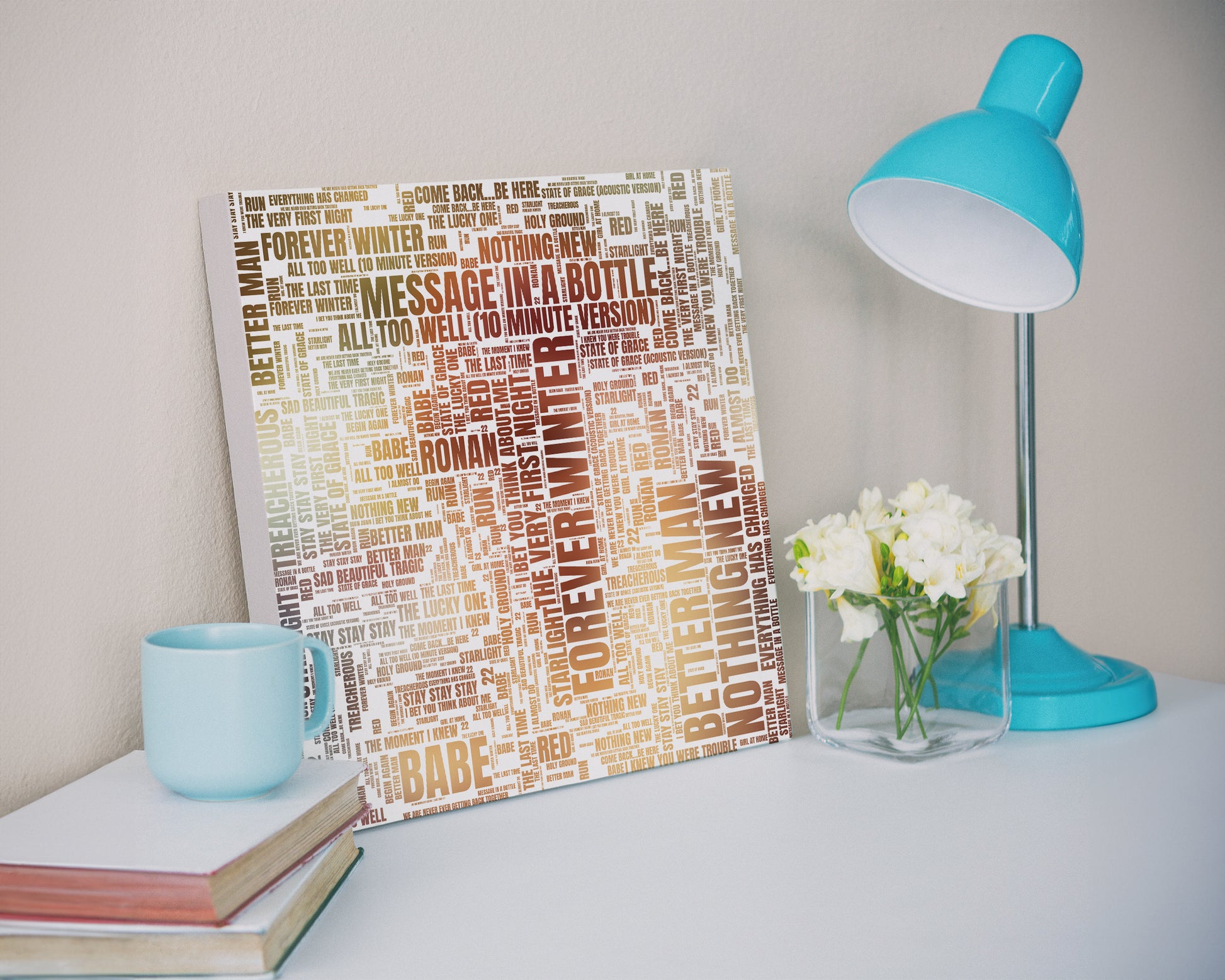 Transform your wall into a stunning work of art. This gorgeous word art design was inspired and created from your favorite album and its song titles. The minimal feel and vivid color make it stand out yet able to fit in with any style of decor. Your space should reflect who you are and what you care about. Adding a pop of color to your walls or desks is an easy way to inject some personality into any room and put a smile on your face. They also make a lovely gift for friends and family.