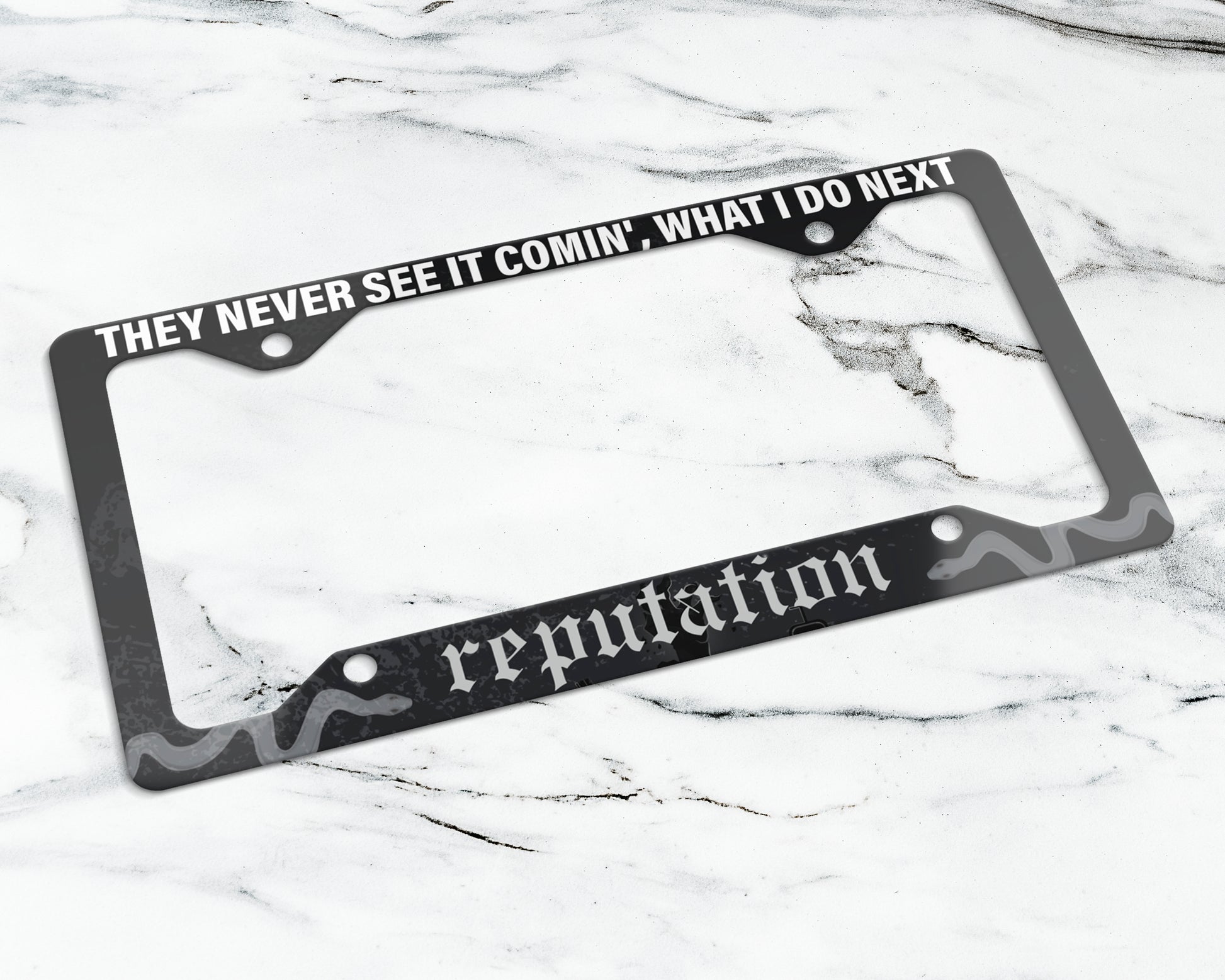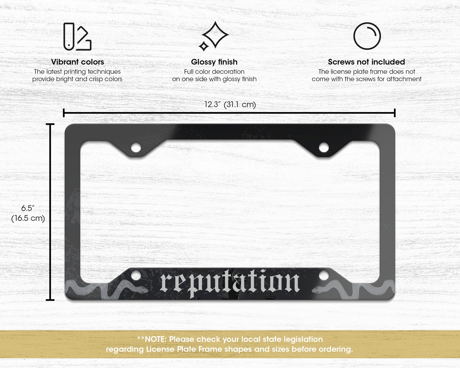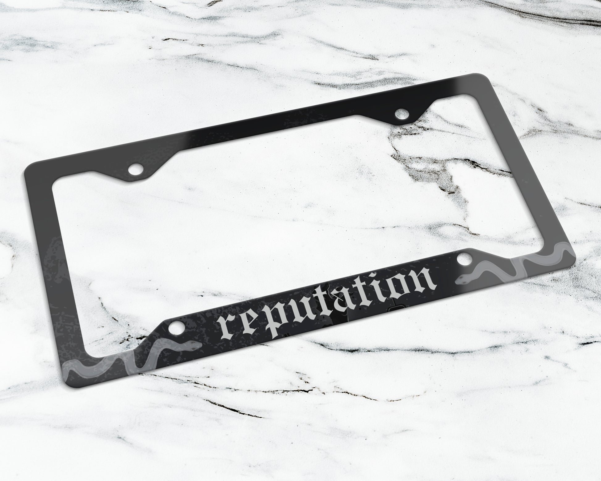 Customizable aluminum license plate frame. Music merch, car accessories, and wall decorations.