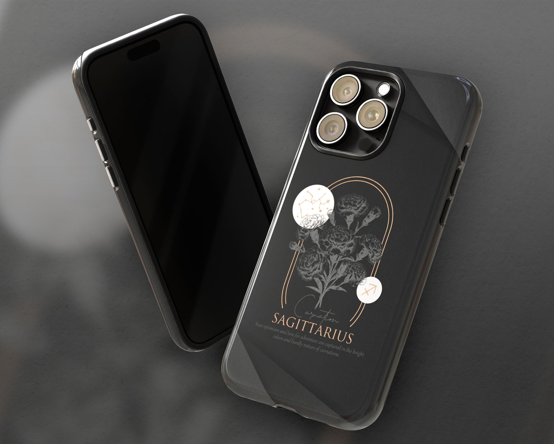 Sagittarius Zodiac sign birth flowers on black papers iPhone case