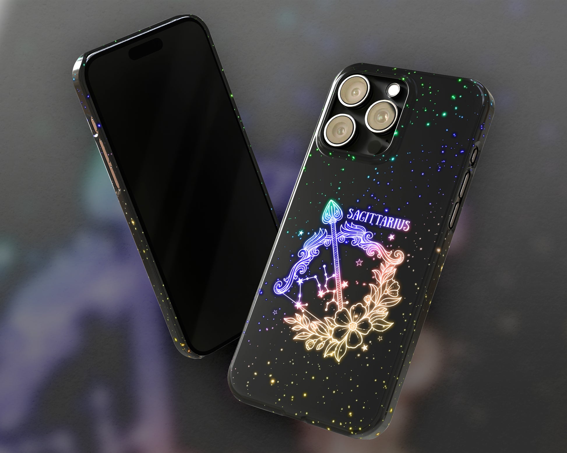 Sagittarius Zodiac sign glowing starry sky iPhone case