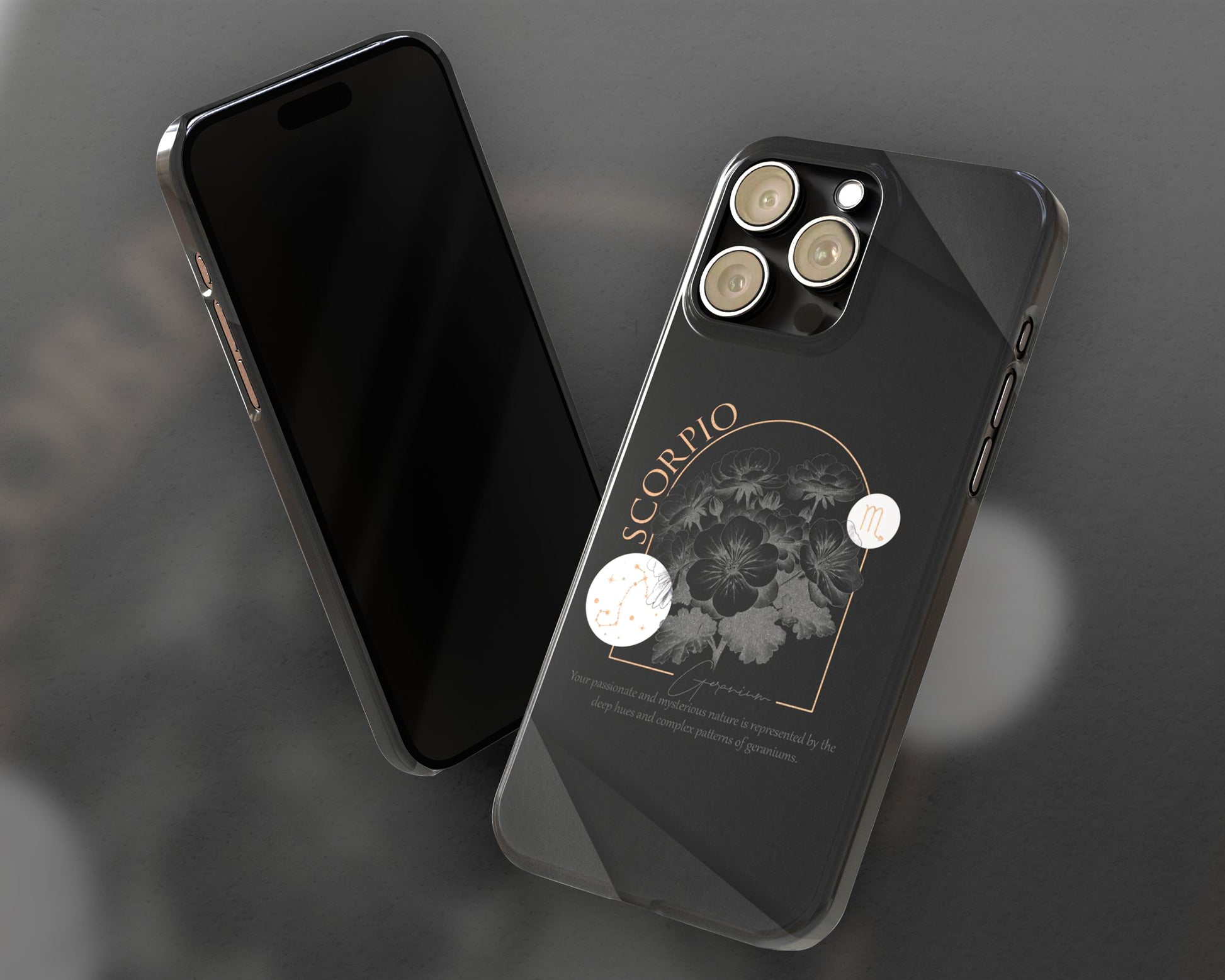 Scorpio Zodiac sign birth flowers on black papers iPhone case