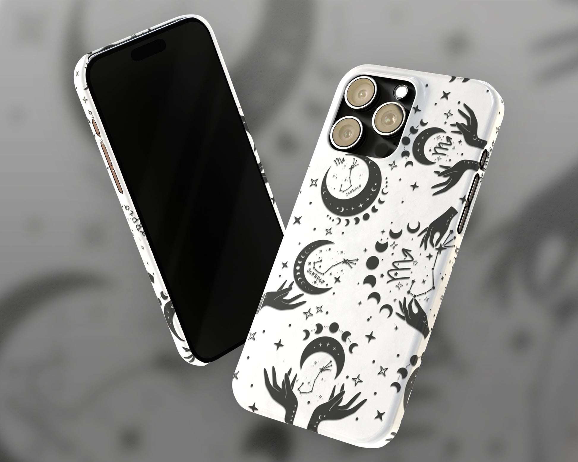 Scorpio Zodiac sign black celestial symbols on white background iPhone case