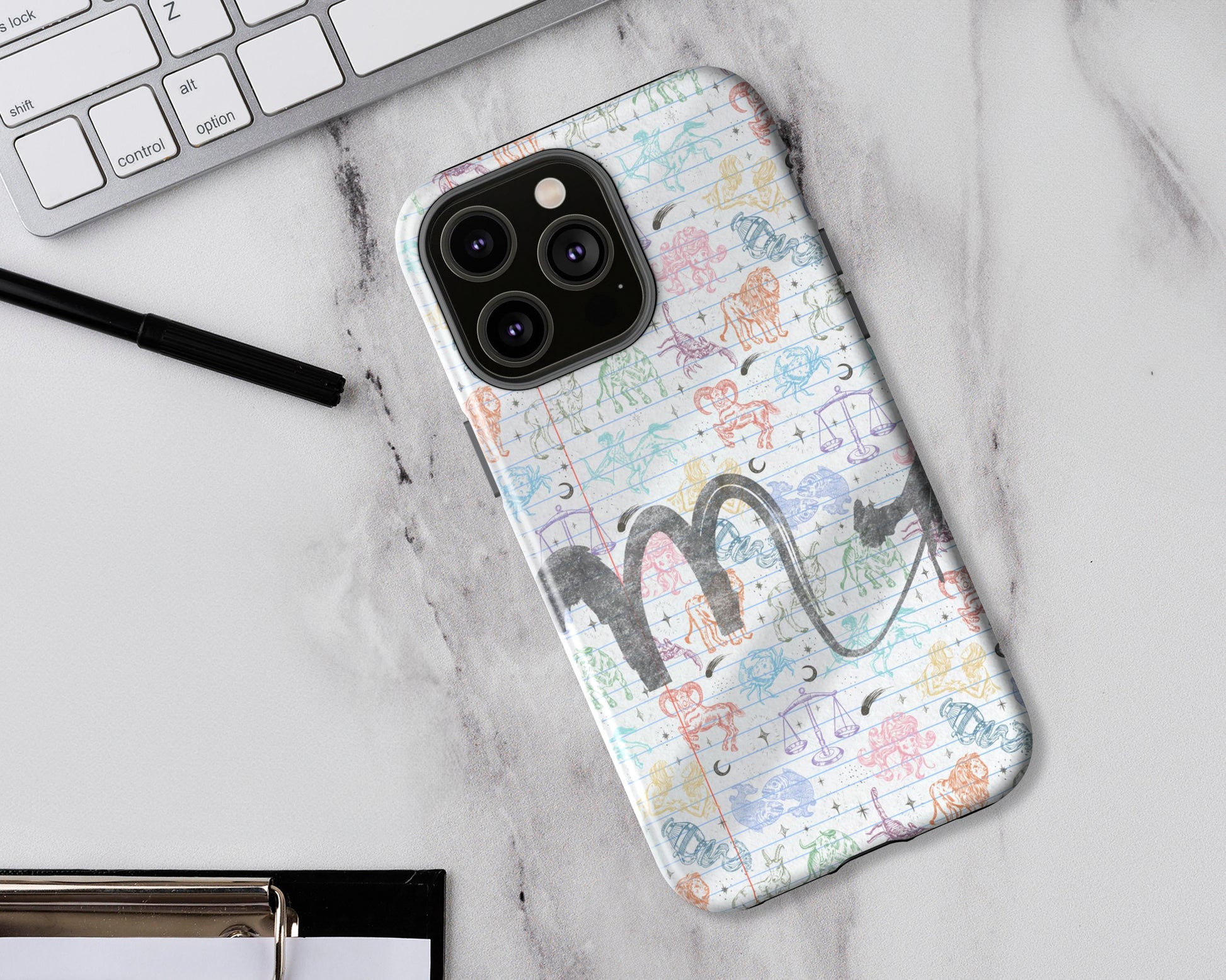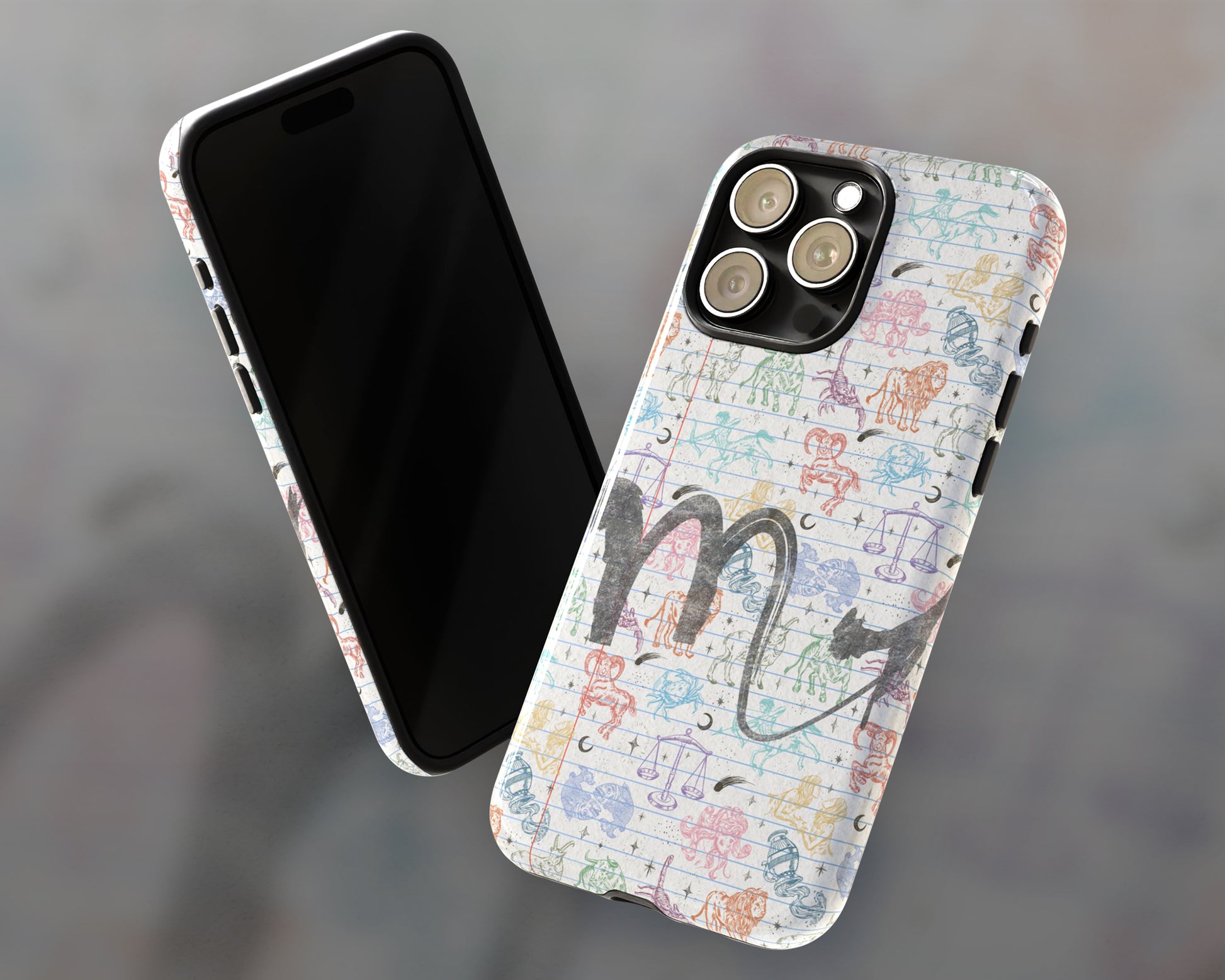 Scorpio Zodiac sign colorful drawings on notebook iPhone case