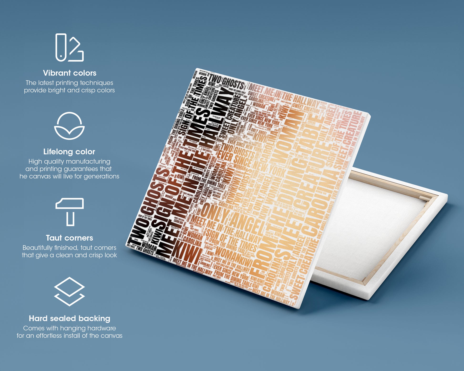 Transform your wall into a stunning work of art. This gorgeous word art design was inspired and created from your favorite album and its song titles. The minimal feel and vivid color make it stand out yet able to fit in with any style of decor. Your space should reflect who you are and what you care about. Adding a pop of color to your walls or desks is an easy way to inject some personality into any room and put a smile on your face. They also make a lovely gift for friends and family.