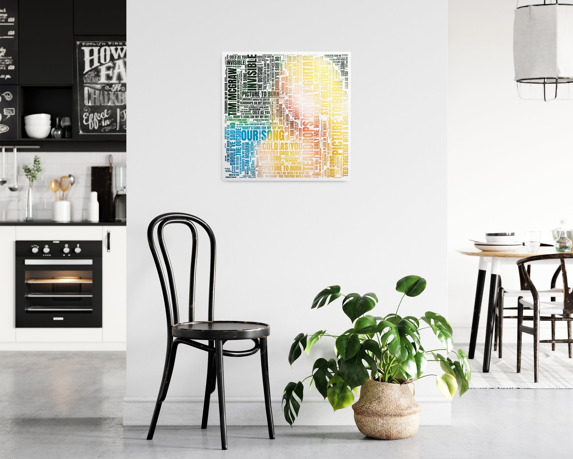 Transform your wall into a stunning work of art. This gorgeous word art design was inspired and created from your favorite album and its song titles. The minimal feel and vivid color make it stand out yet able to fit in with any style of decor. Your space should reflect who you are and what you care about. Adding a pop of color to your walls is an easy way to inject some personality into any room and put a smile on your face. They also make a lovely gift for friends and family.