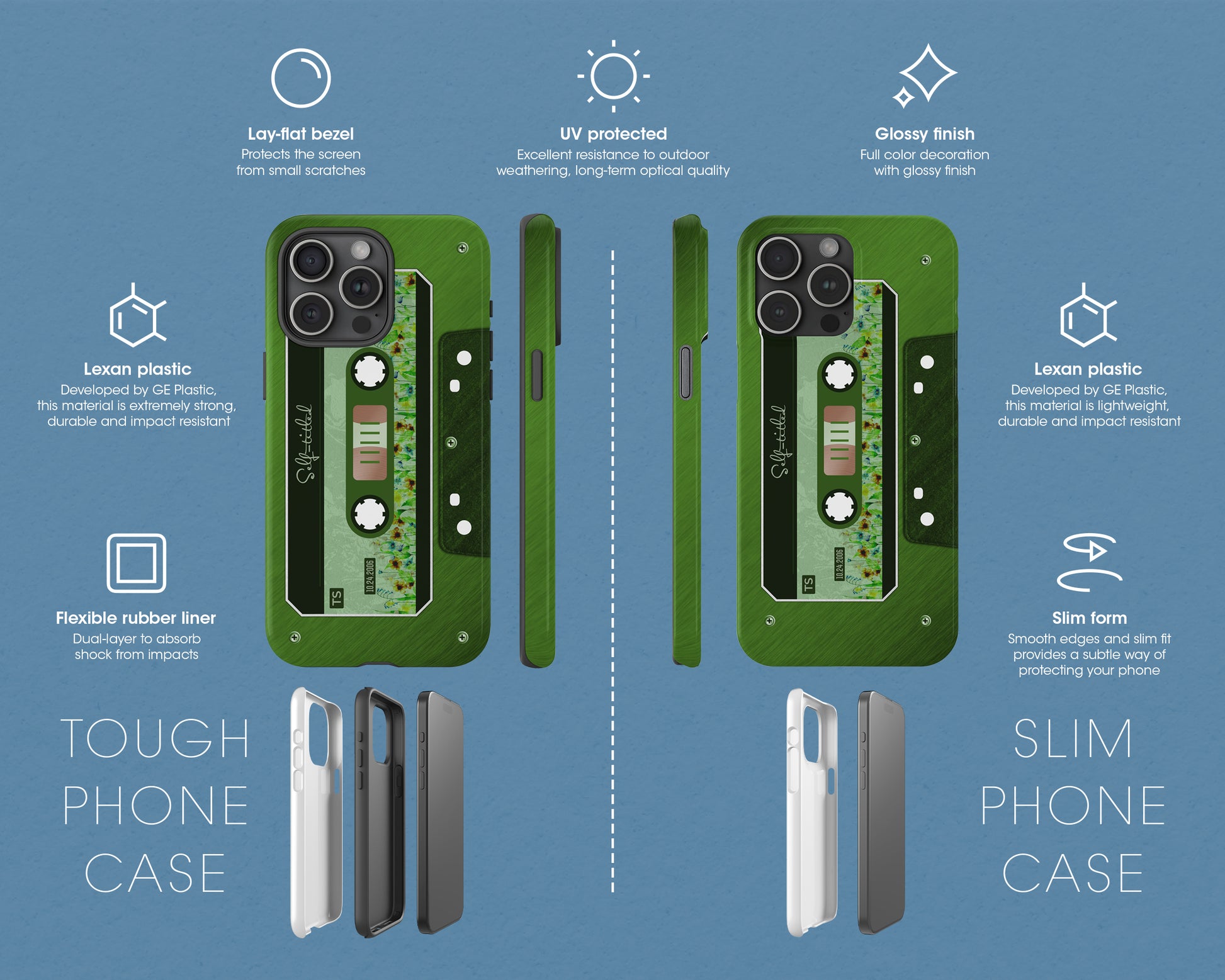Vintage cassette tape phone case, music merch, gift, and accessories. Phone case for iPhone 16, iPhone 16 Plus, iPhone 16 Pro, iPhone 16 Pro Max, iPhone 15, iPhone 15 Plus, iPhone 15 Pro, iPhone 15 Pro Max, iPhone 14, iPhone 14 Plus, iPhone 14 Pro, iPhone 14 Pro Max, iPhone 13, iPhone 13 Mini, iPhone 13 Pro, iPhone 13 Pro Max, iPhone 12, iPhone 12 Mini, iPhone 12 Pro, iPhone 12 Pro Max, iPhone SE, iPhone 11, iPhone 11 Pro, iPhone 11 Pro Max, iPhone X, iPhone XR, iPhone XS, iPhone XS Max, iPhone 8, iPhone 8 Plus, iPhone 7, iPhone 7 Plus.